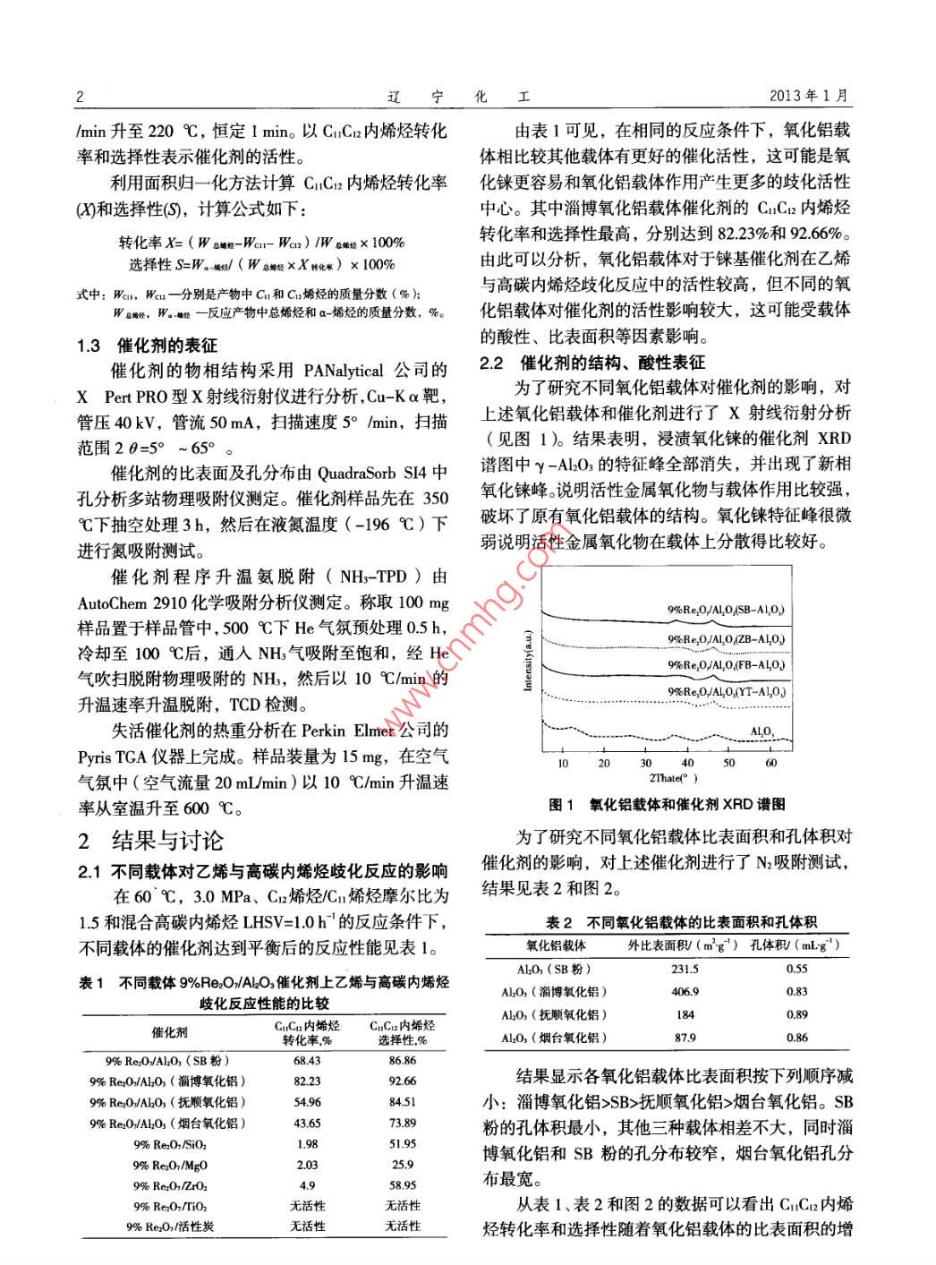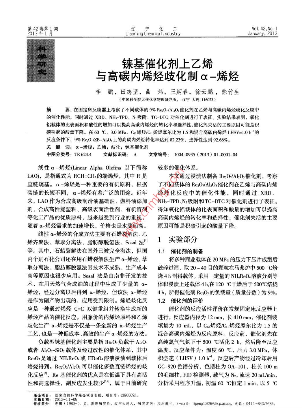 铼基催化剂上乙烯与高碳内烯烃歧化制α-烯烃