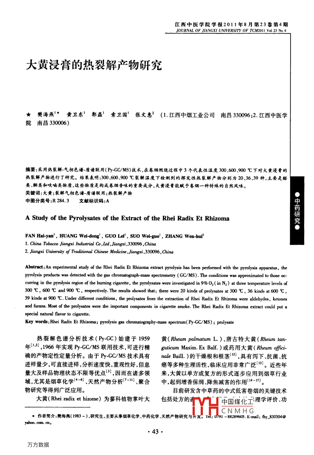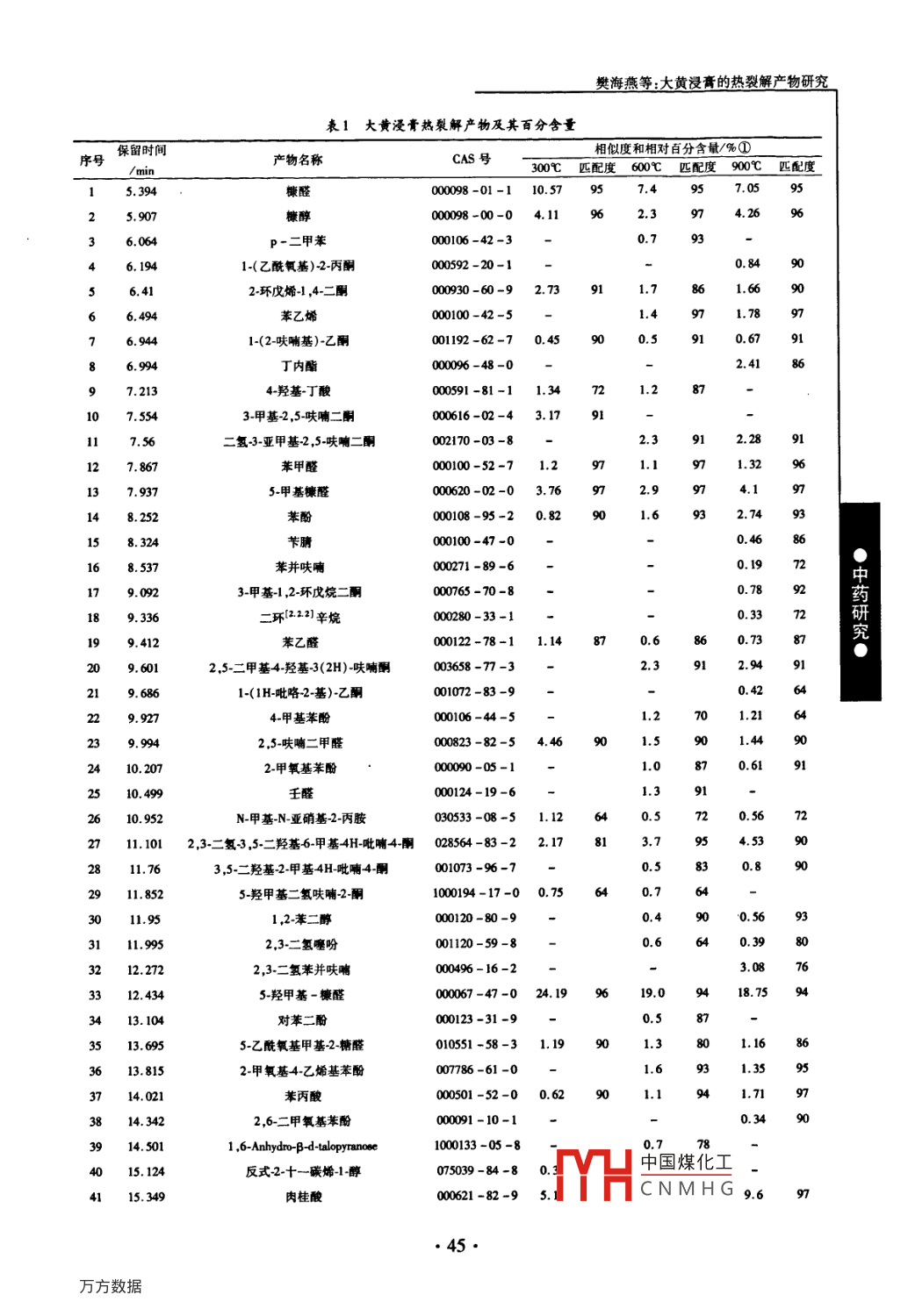 大黄浸膏的热裂解产物研究