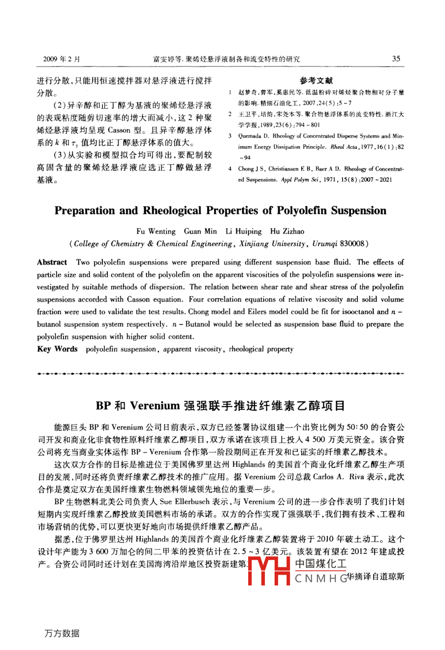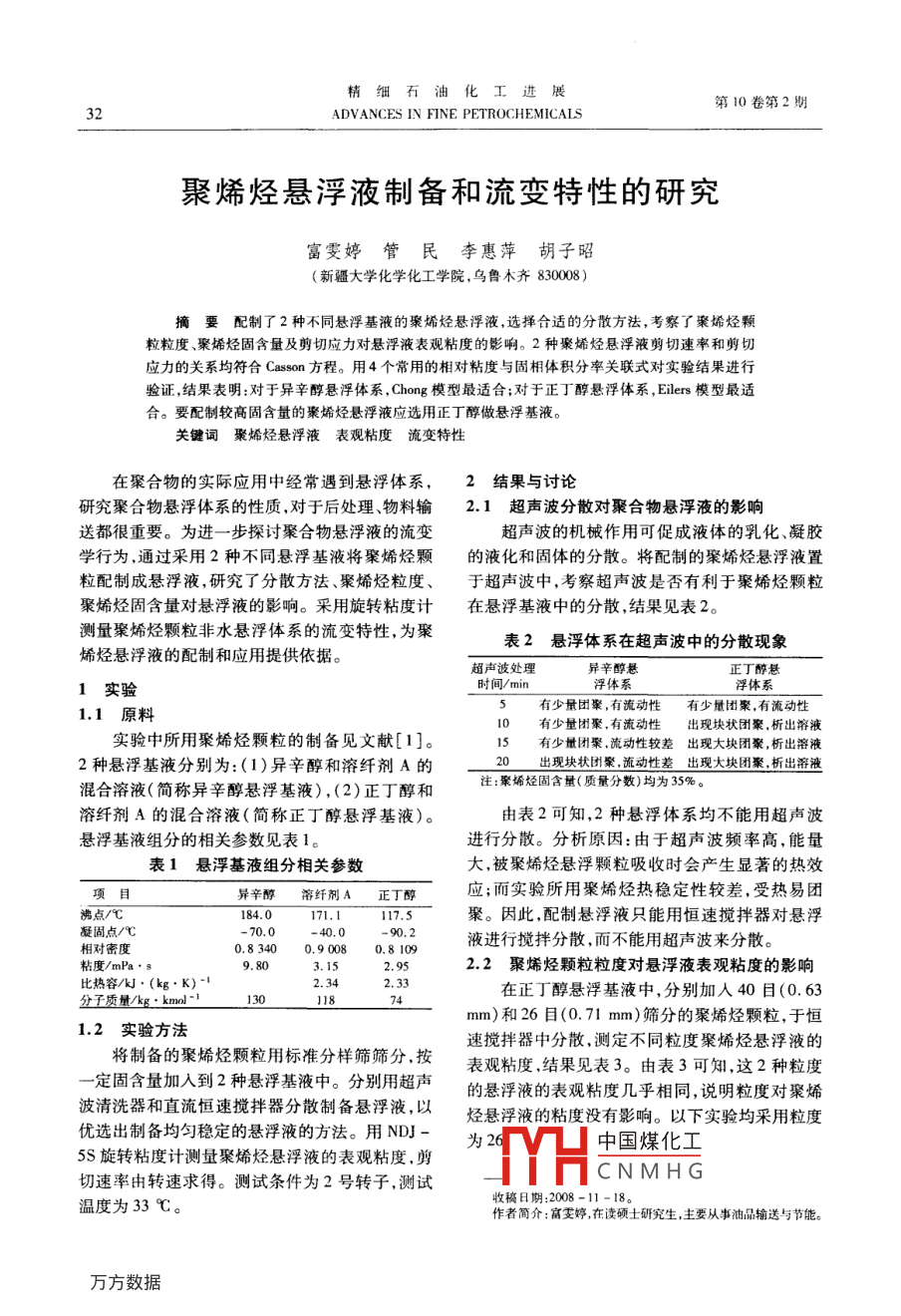 聚烯烃悬浮液制备和流变特性的研究