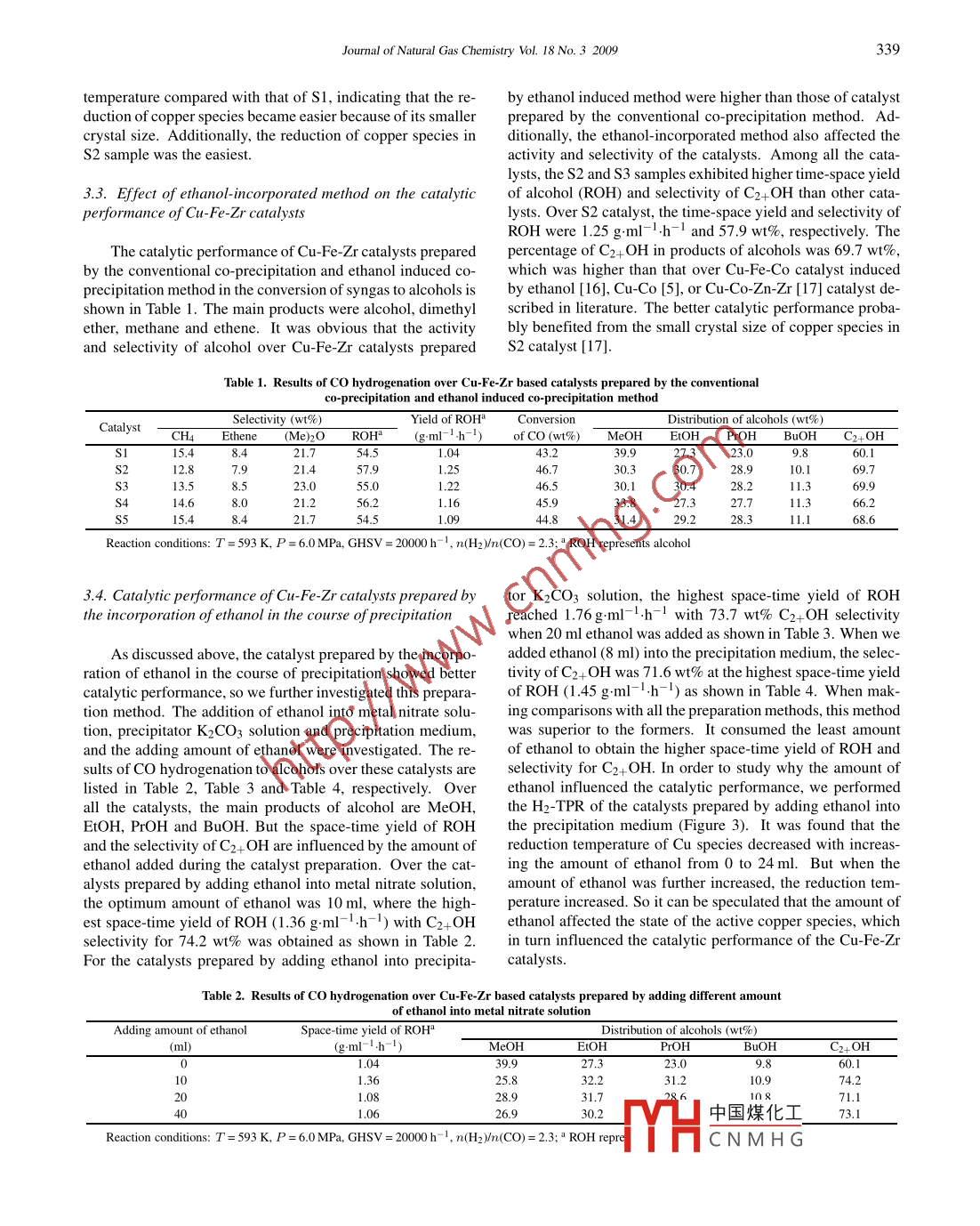 - 期刊名字:天然气化学(英文版)