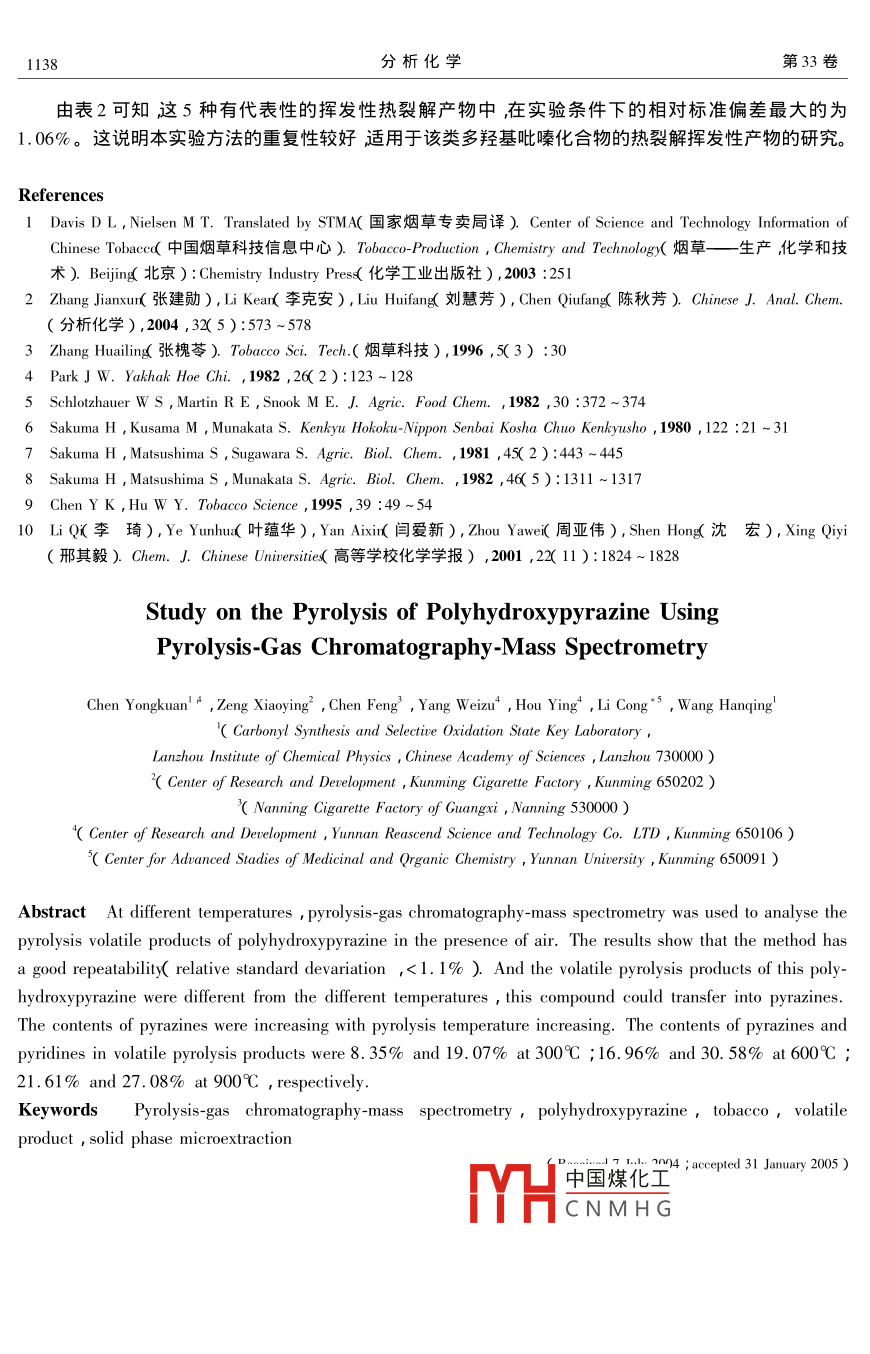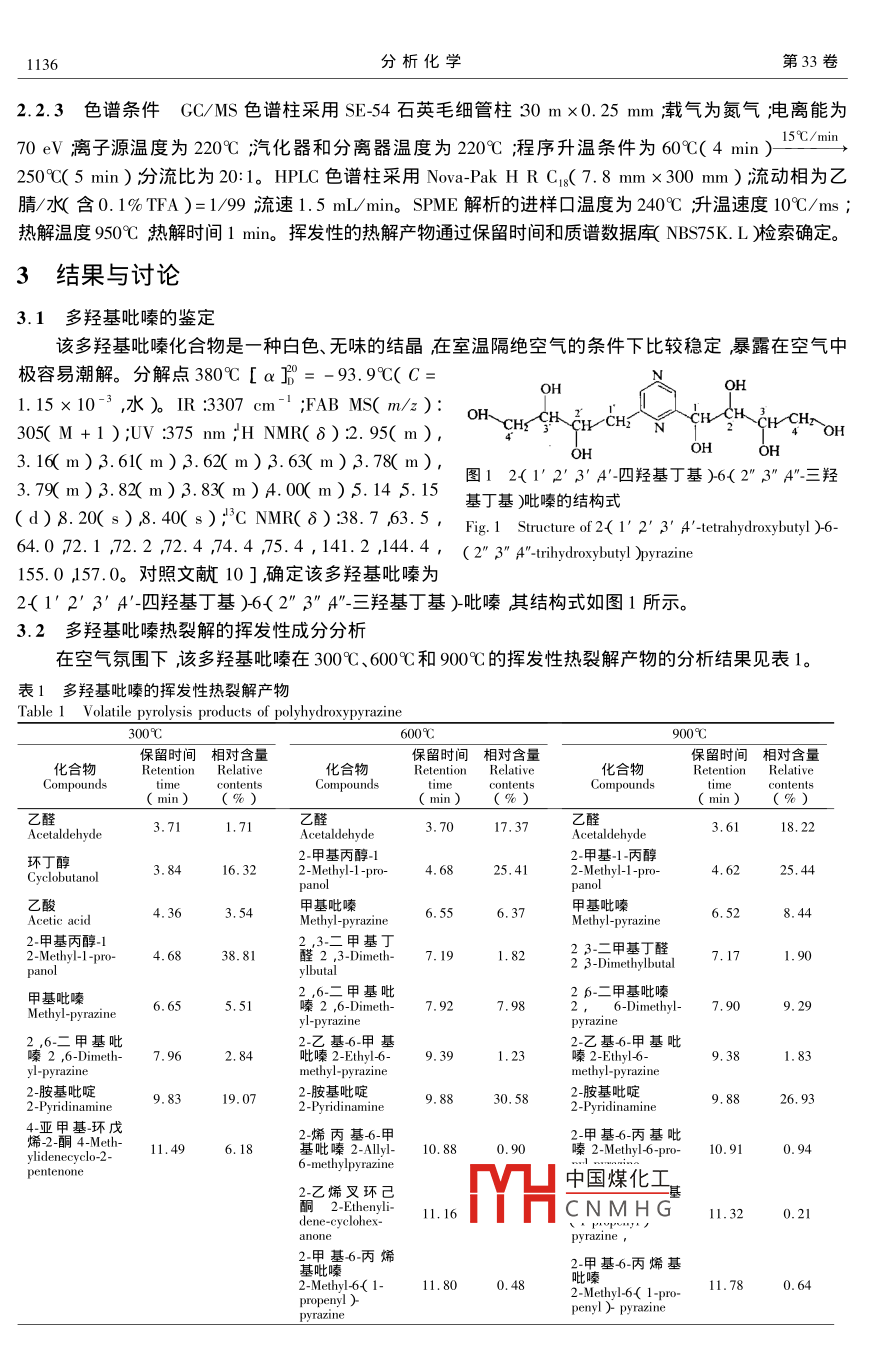 热裂解-气相色谱-质谱联用技术研究多羟基吡嗪的热裂解行为