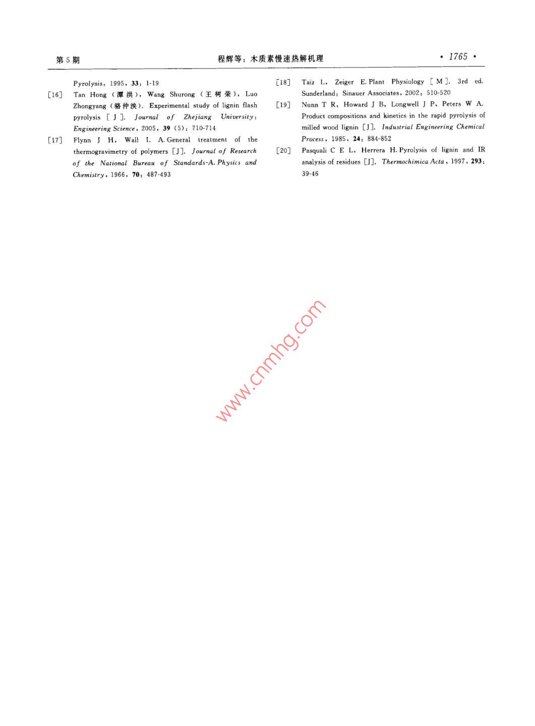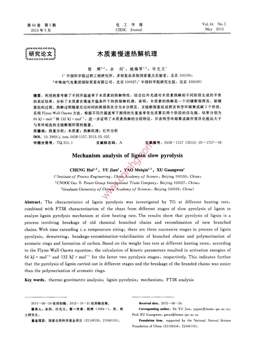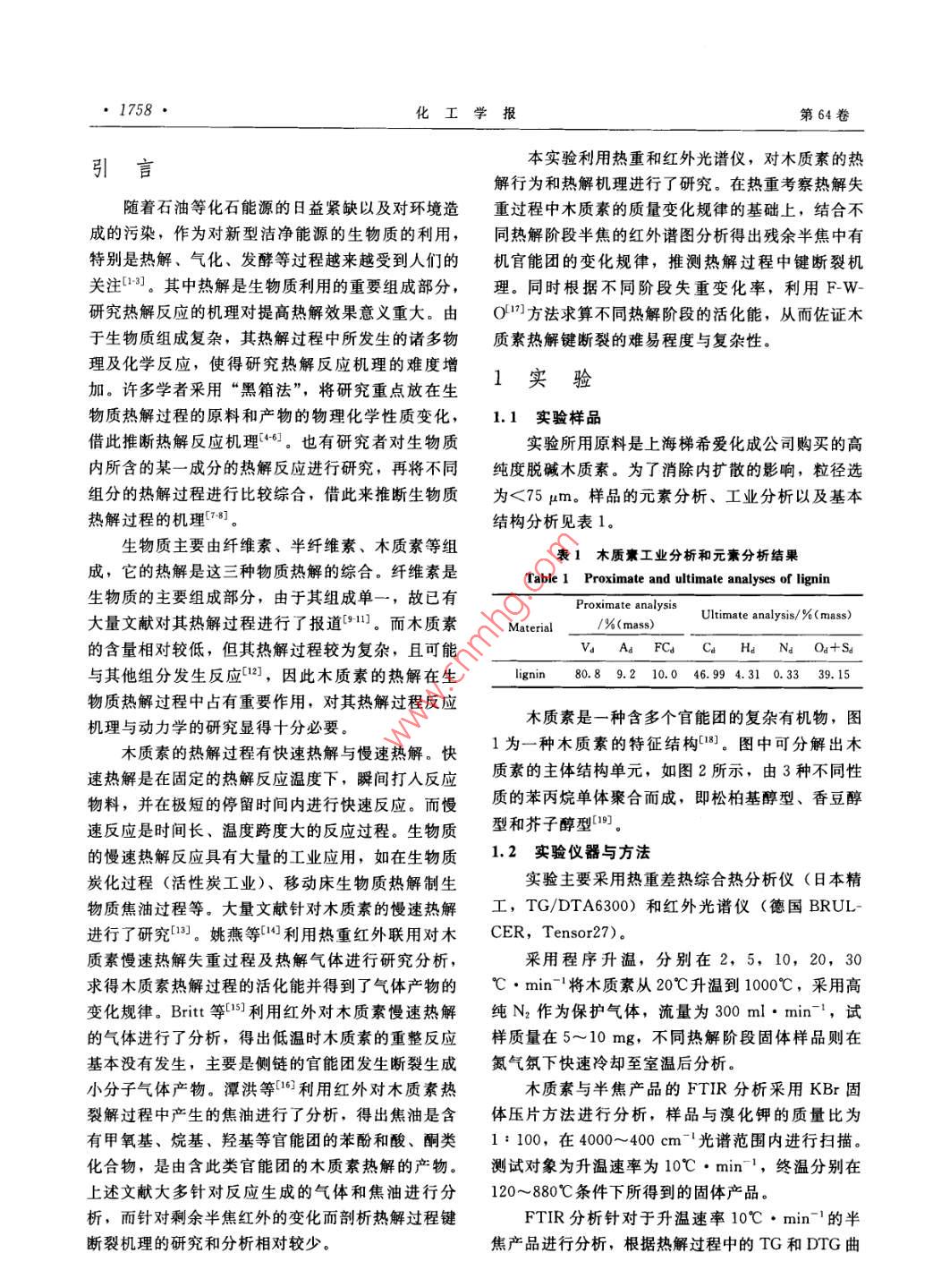 木质素慢速热解机理