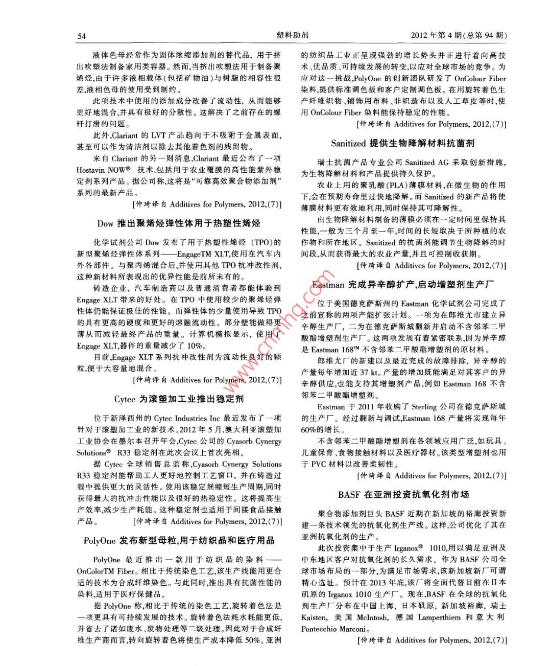 - 期刊名字:塑料助剂