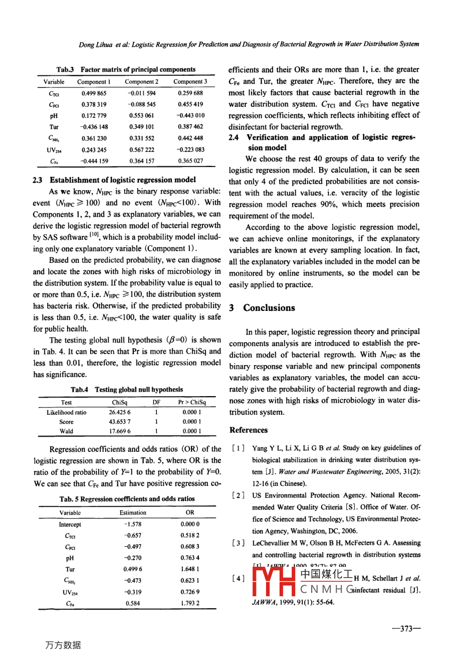 Logistic Regression for Prediction and Diagnosis of Bacterial Regrowth in Water Distribution System