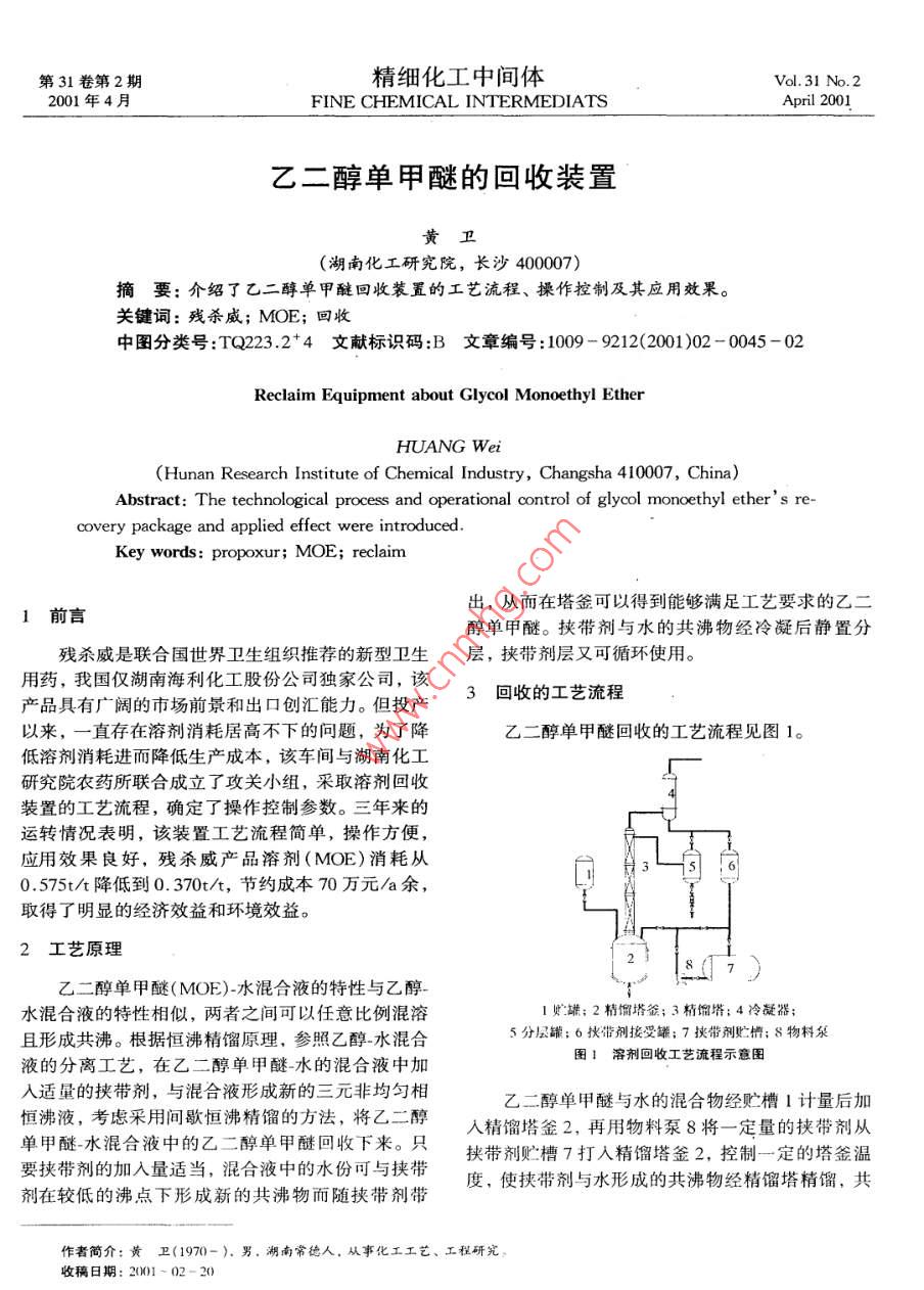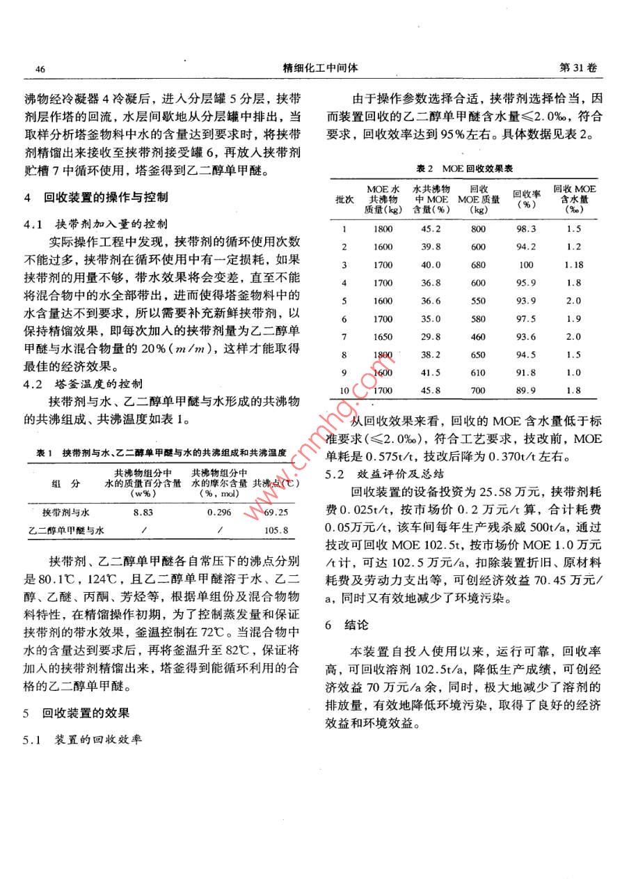 乙二醇单甲醚的回收装置