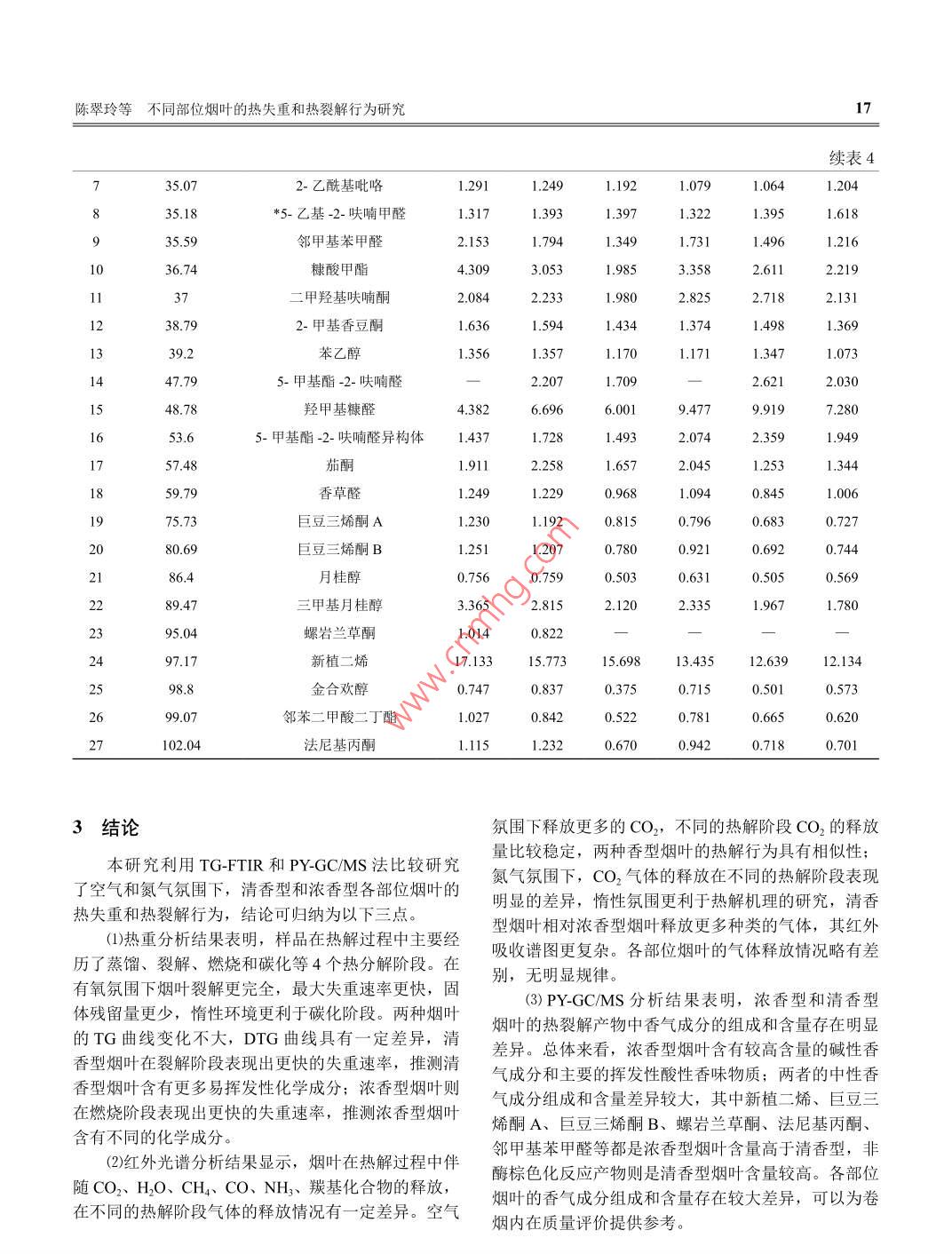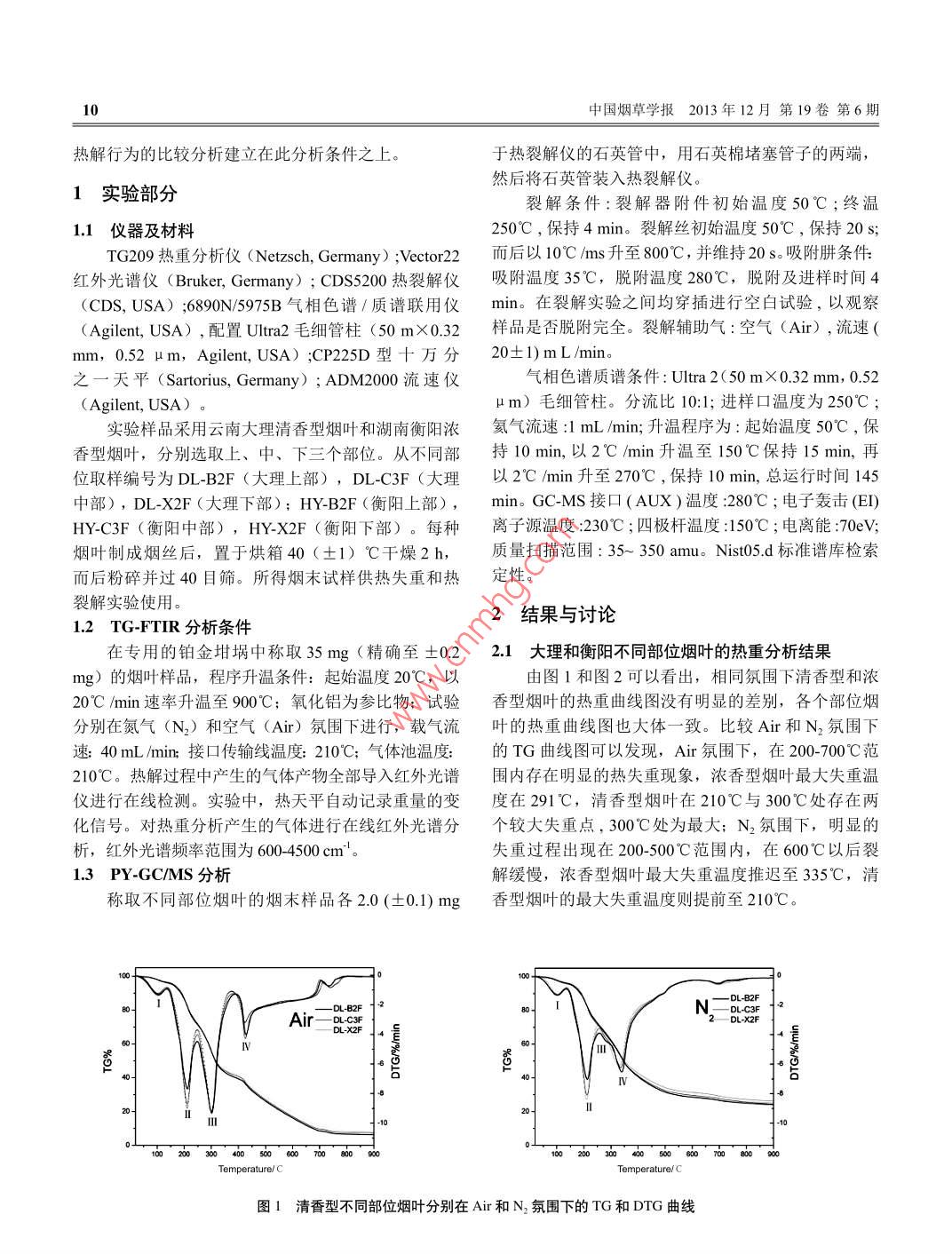 不同部位烟叶的热失重和热裂解行为研究