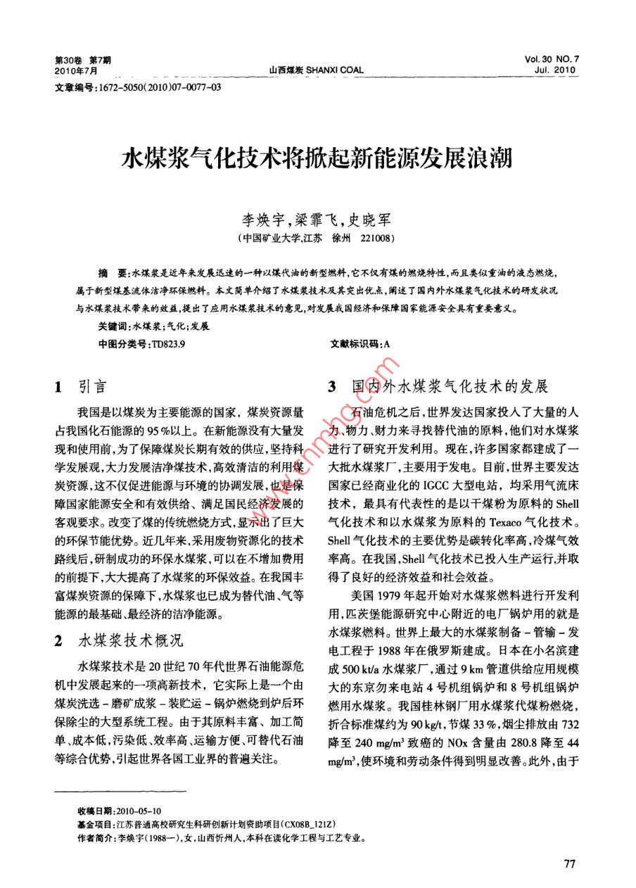 水煤浆气化技术将掀起新能源发展浪潮