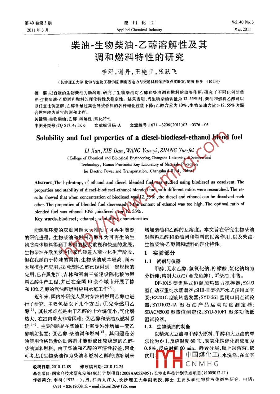 柴油-生物柴油-乙醇溶解性及其调和燃料特性的研究