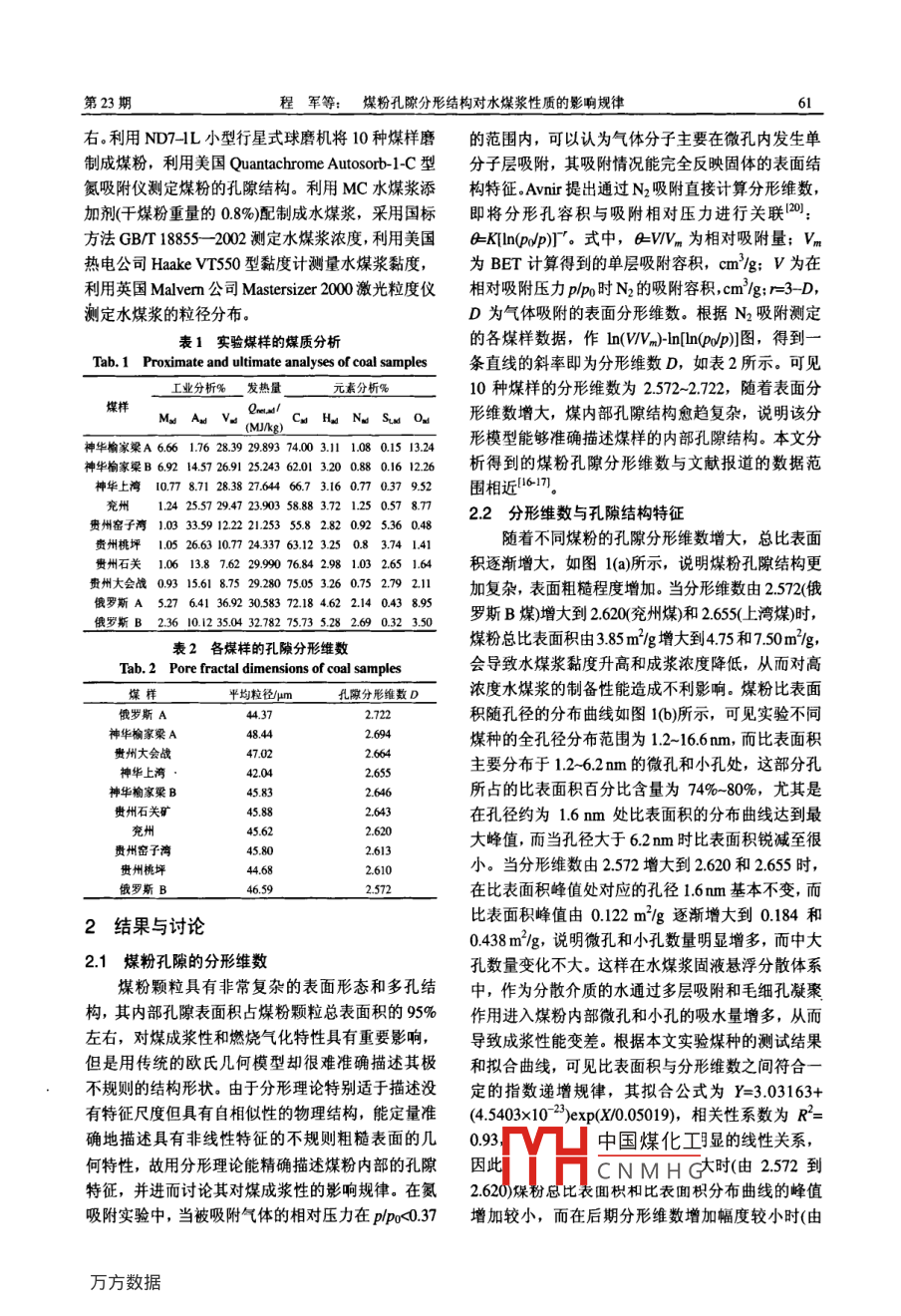 煤粉孔隙分形结构对水煤浆性质的影响规律
