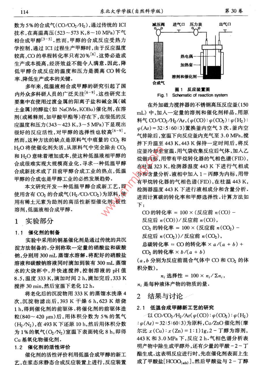 CO/CO2/H2低温合成甲醇新工艺及催化剂研究