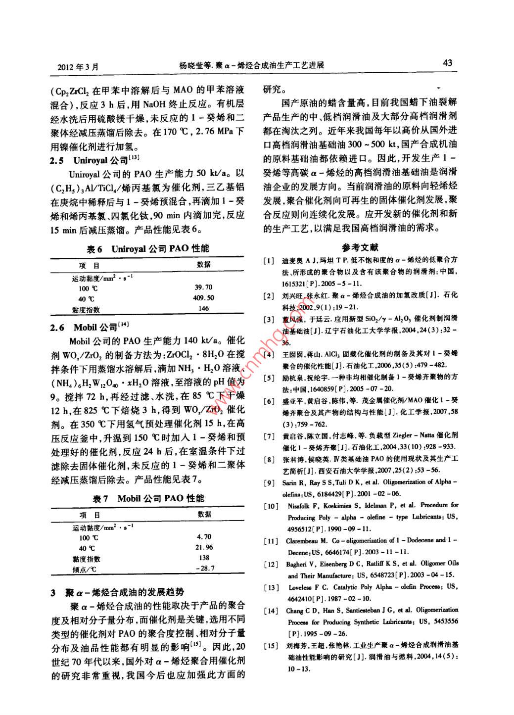 聚α-烯烃合成油生产工艺进展