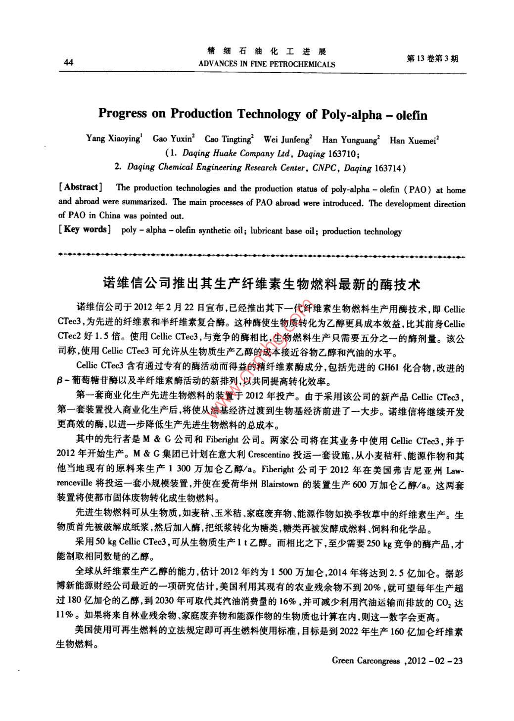 - 作者单位:大庆华科股份有限公司,大庆化工研究中心