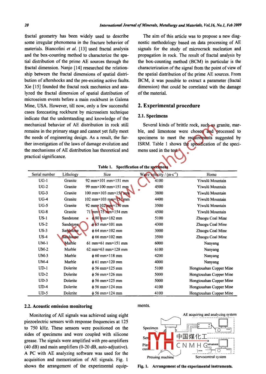 Fractal analysis on the spatial distribution of acoustic emission in the failure process of rock spe Fractal analysis on the spatial distribution of acoustic emission in the failure process of rock spe
