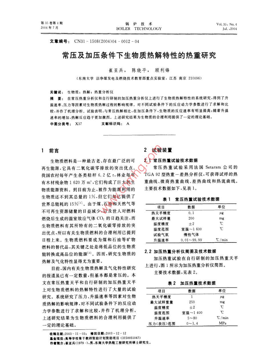 - 期刊名字:锅炉技术