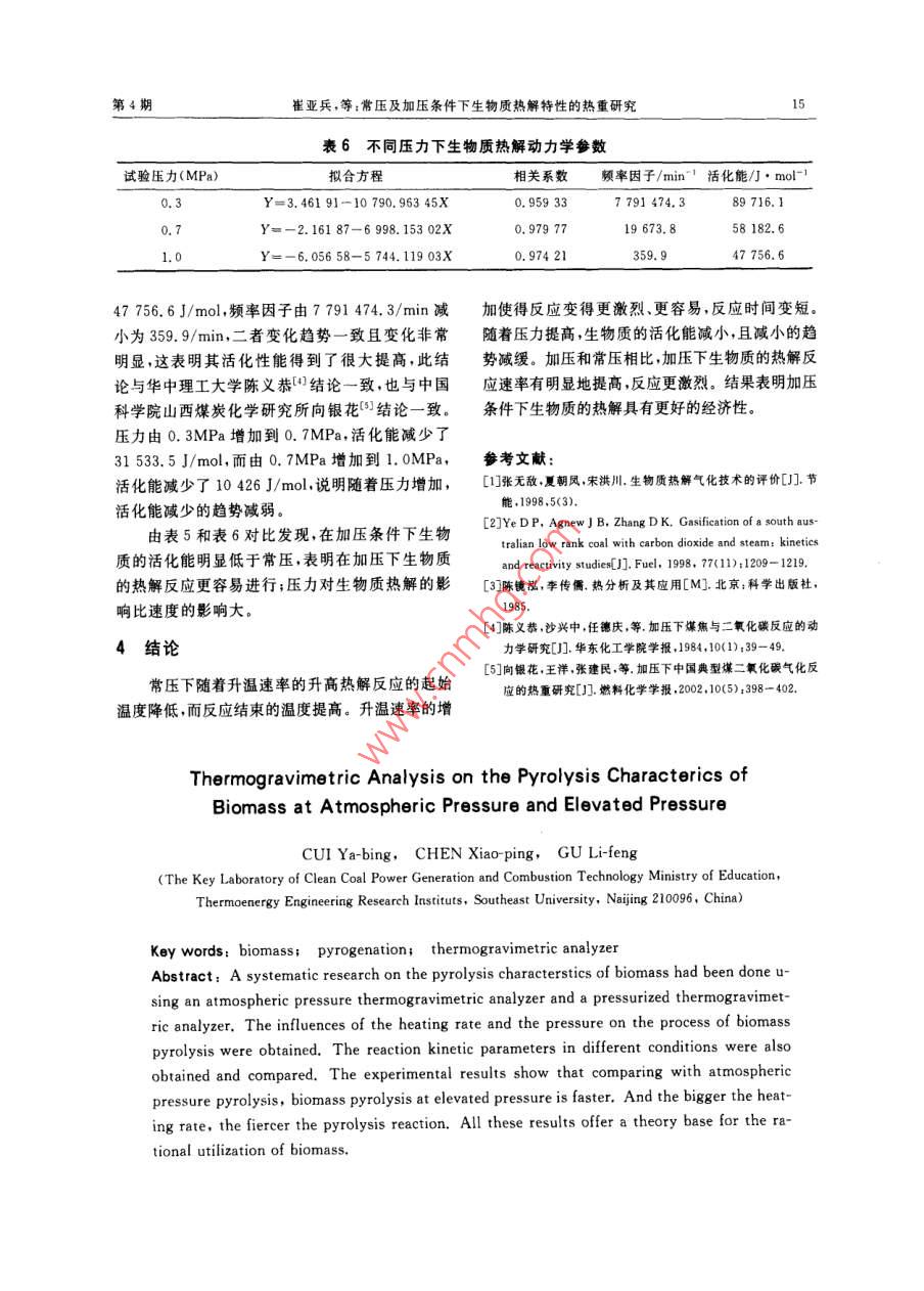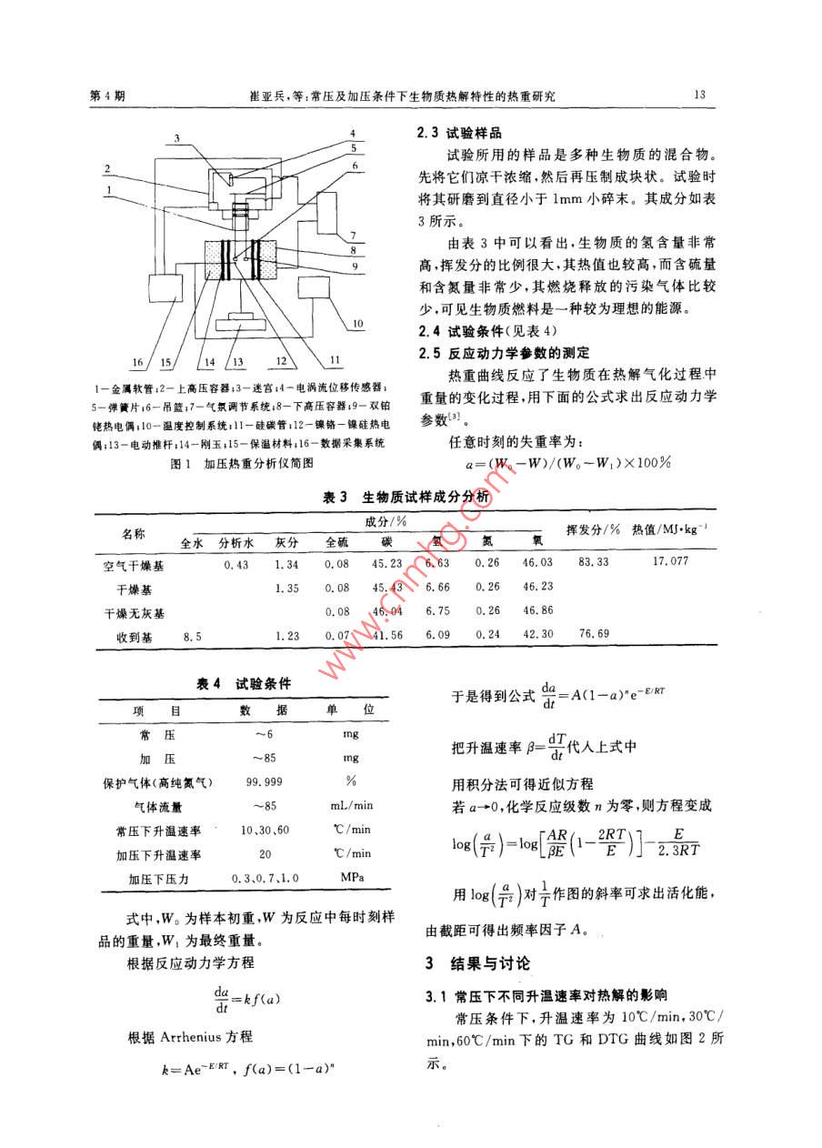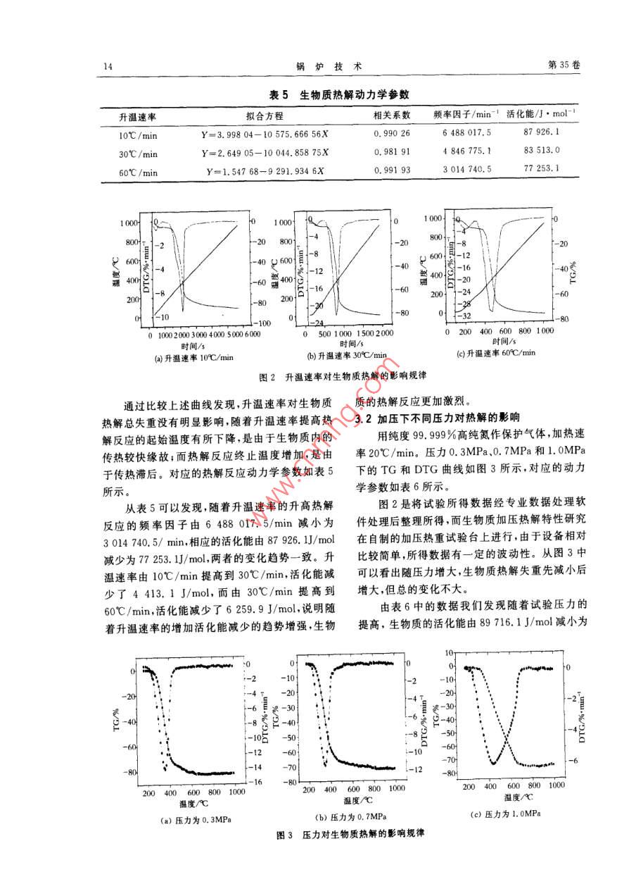 常压及加压条件下生物质热解特性的热重研究