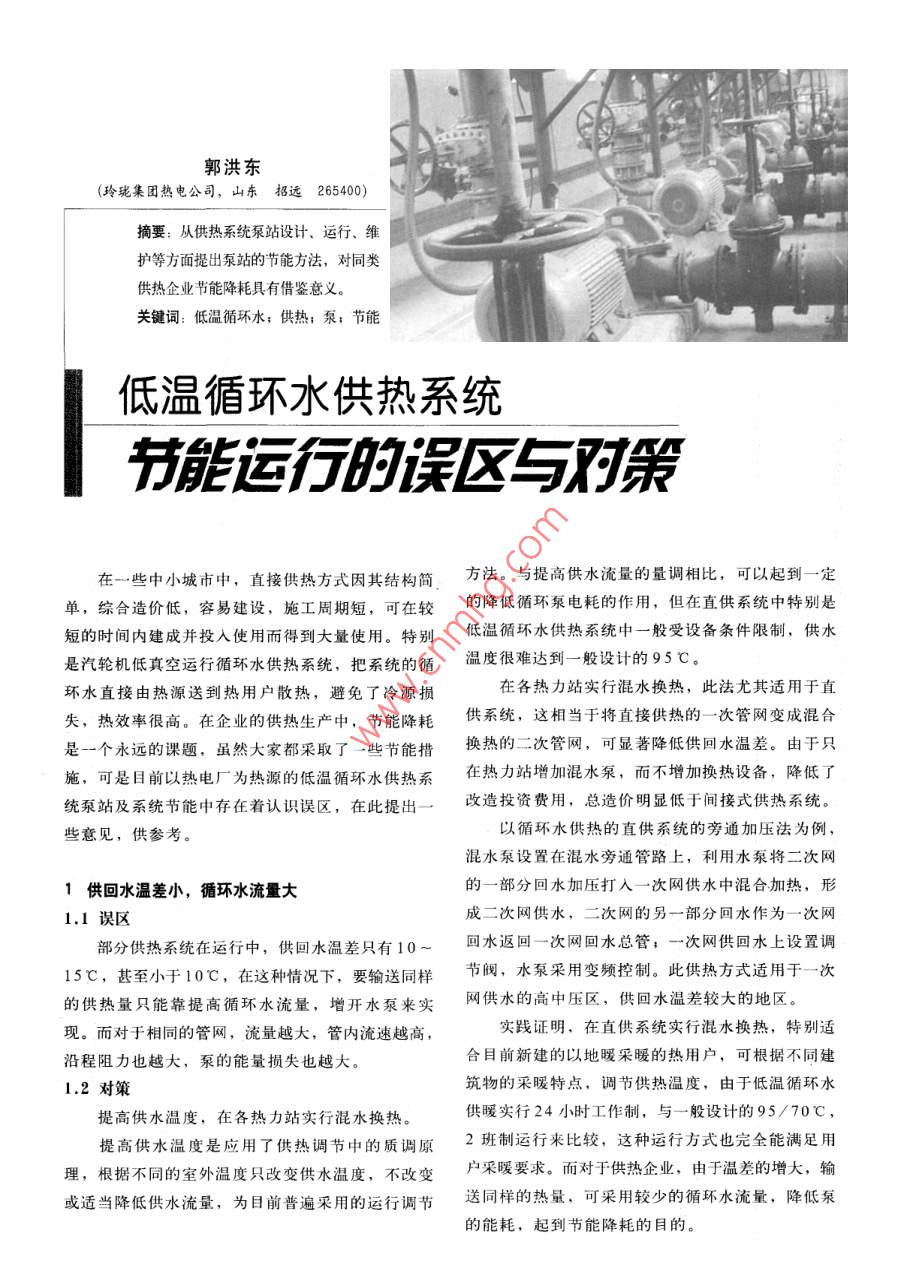 低温循环水供热系统节能运行的误区与对策