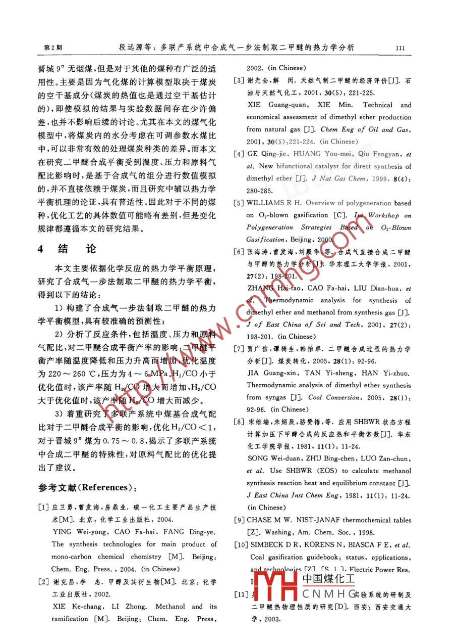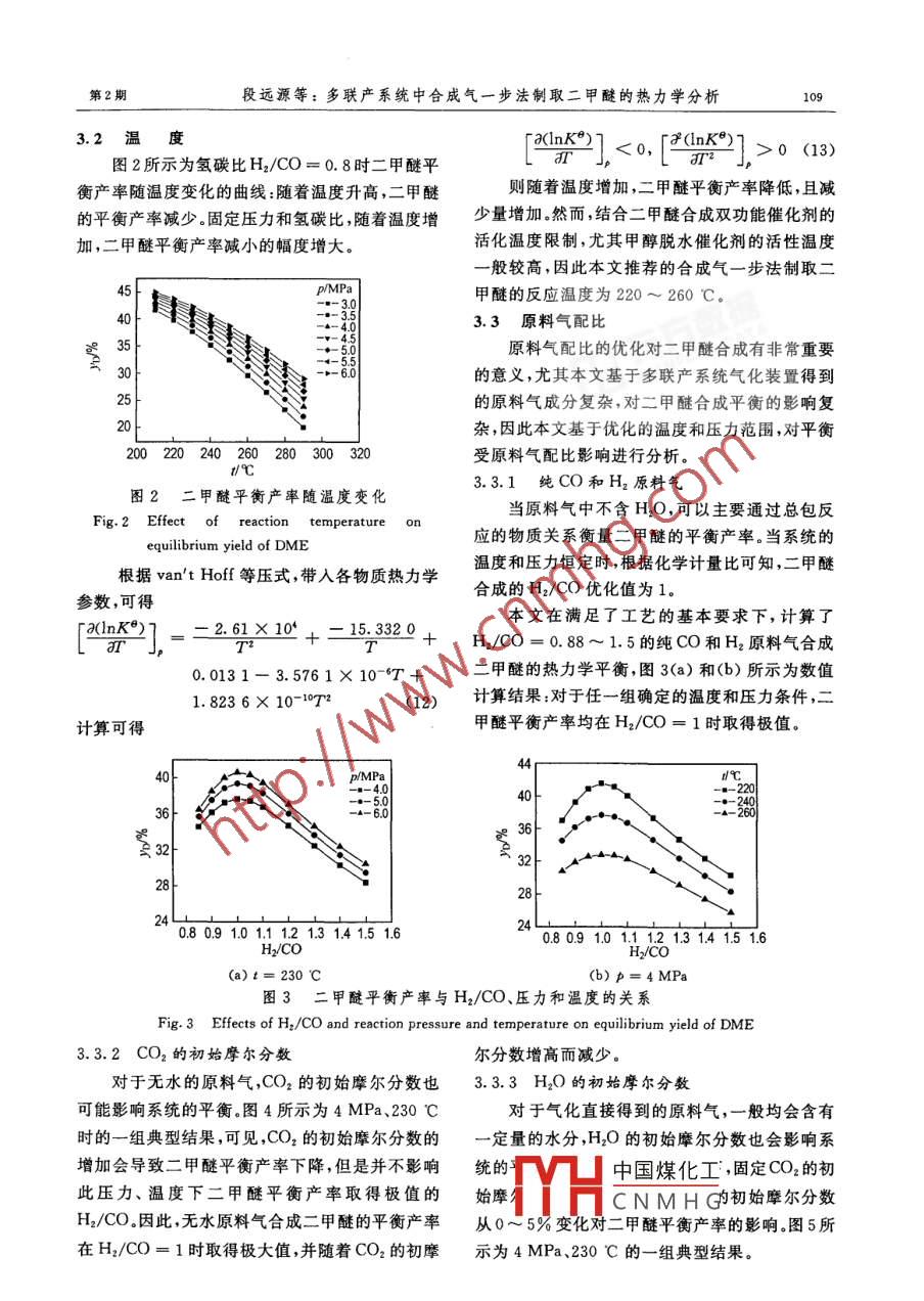 多联产系统中合成气一步法制取二甲醚的热力学分析