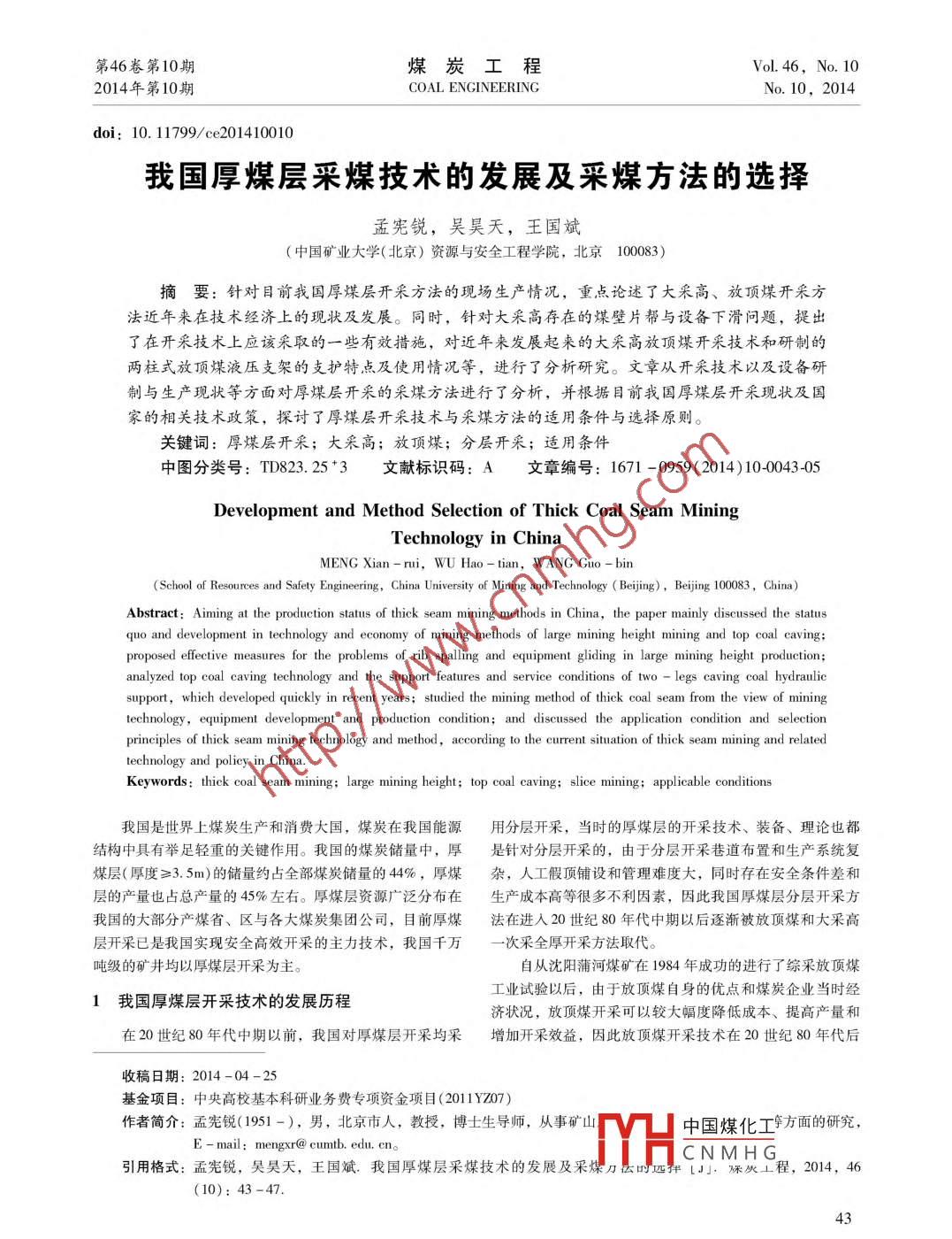 我国厚煤层采煤技术的发展及采煤方法的选择