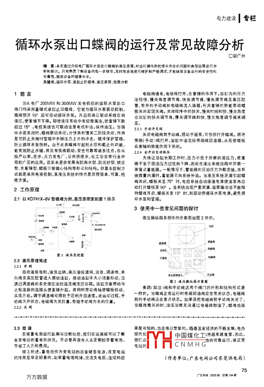 循环水泵出口蝶阀的运行及常见故障分析
