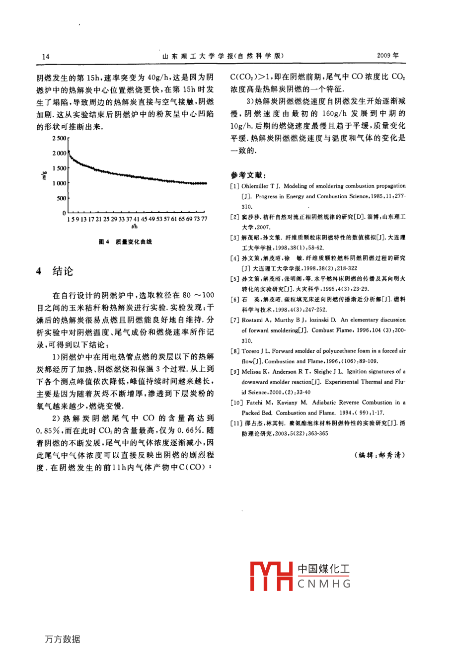 热解炭阴燃特性的实验研究