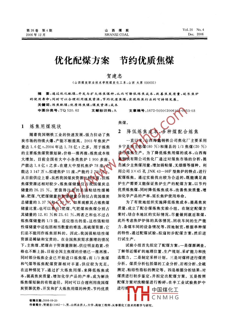 - 作者单位:山西煤炭职业技术学院煤炭化工系