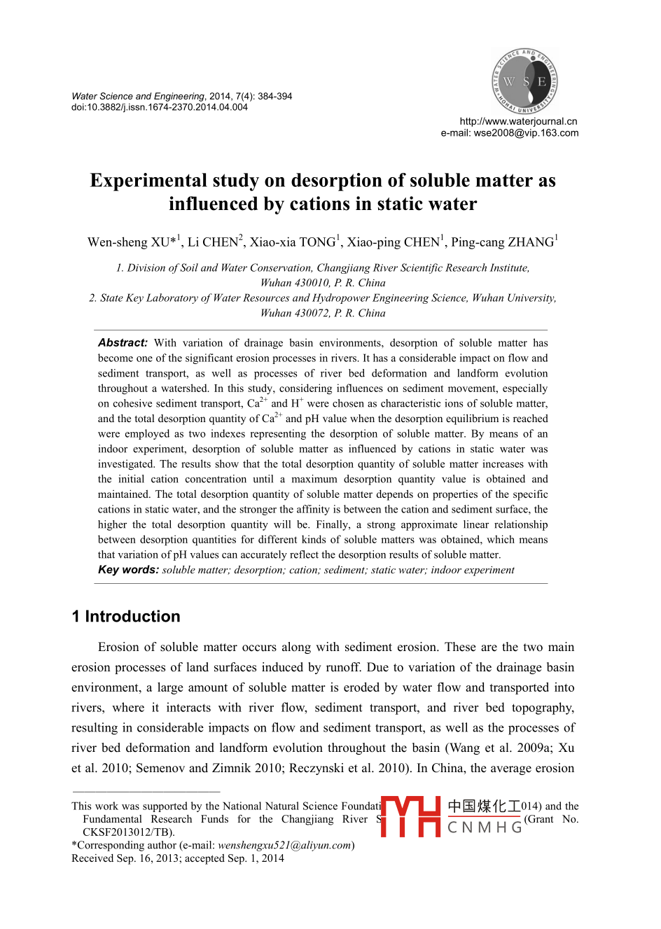 - 期刊名字:水科学与水工程