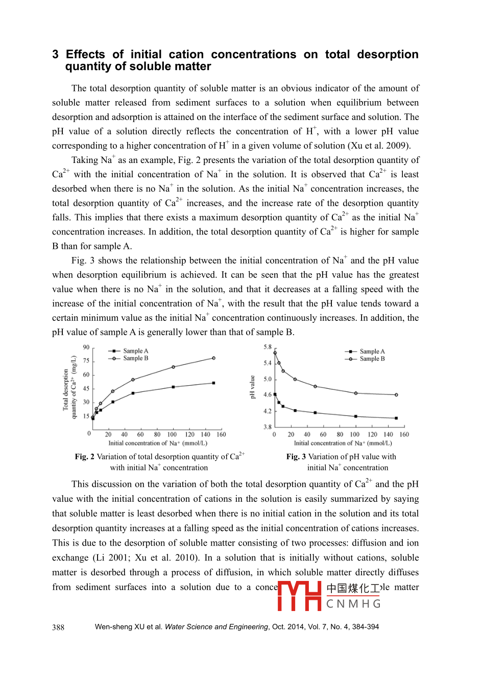 Experimental study on desorption of soluble matter as influenced by cations in static water