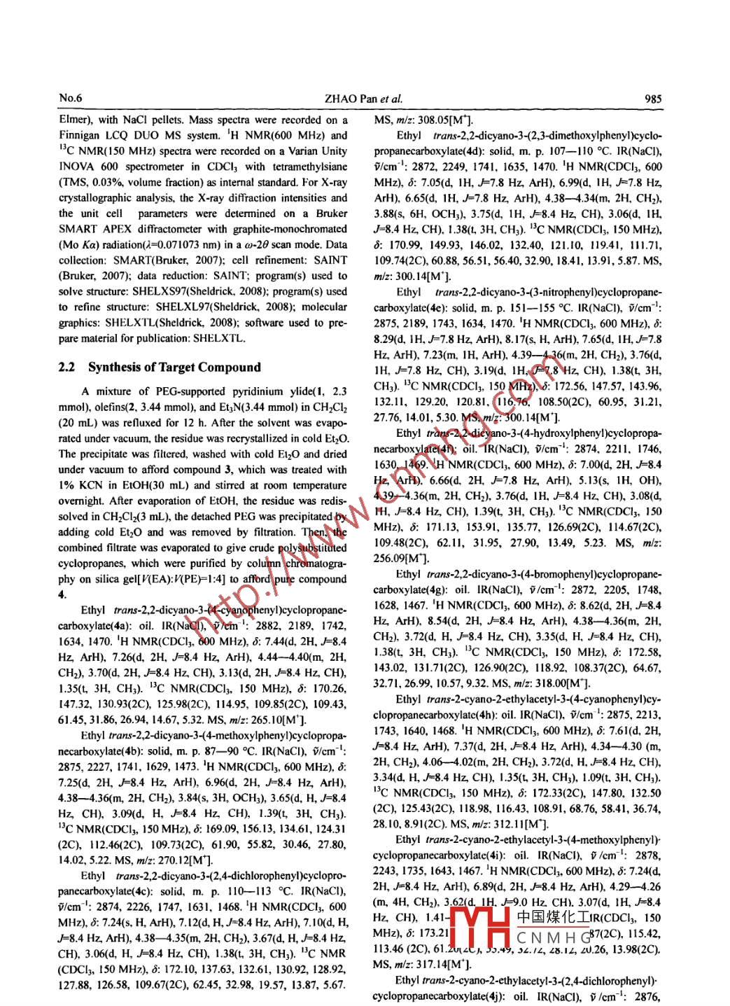 Stereoselective Synthesis of Polysubstituted Cyclopropanes from Poly(ethylene glycol)Supported Pyrid
