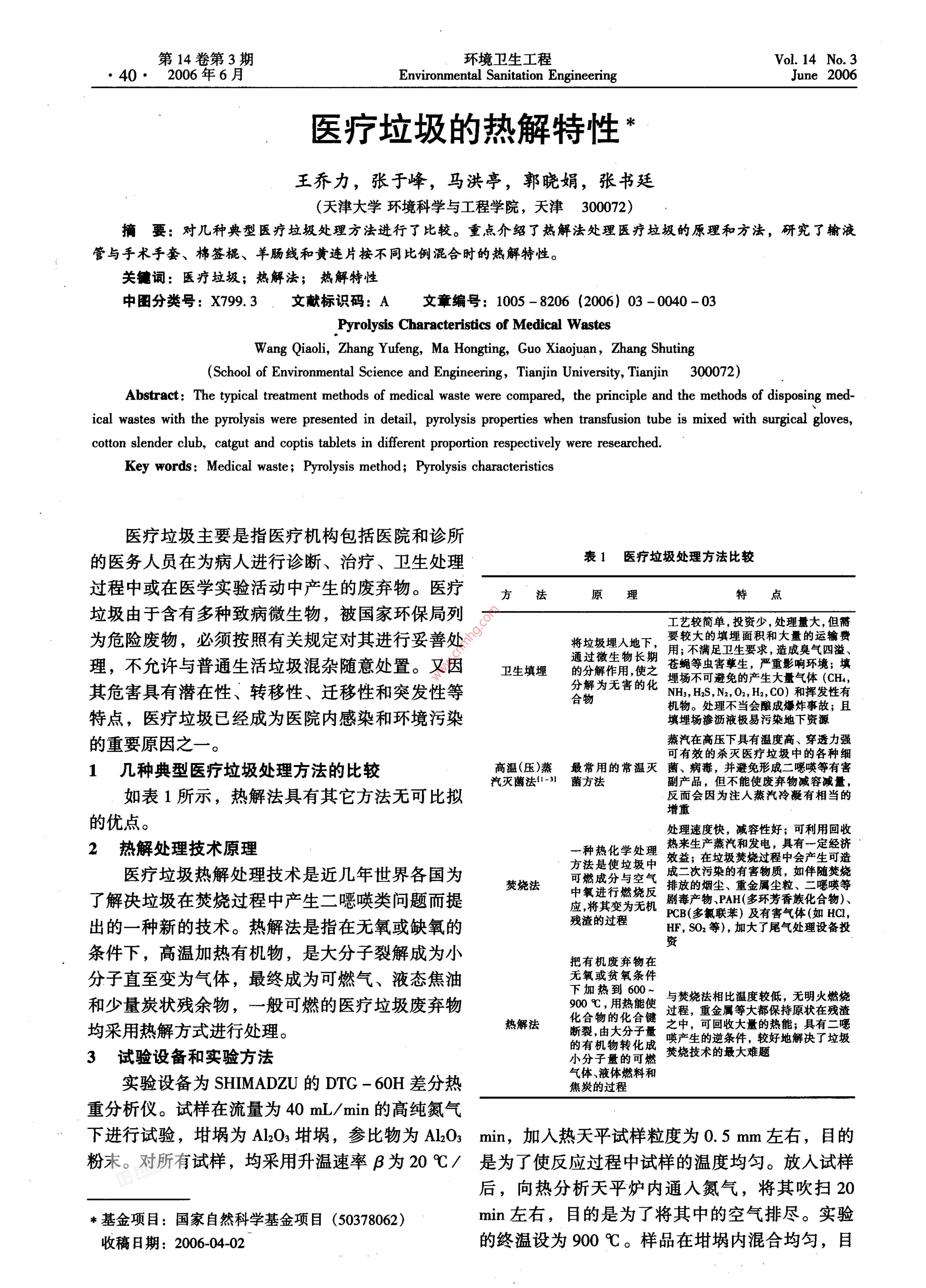 医疗垃圾的热解特性