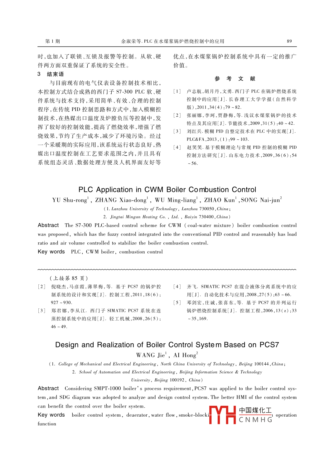 PLC 在水煤浆锅炉燃烧控制中的应用