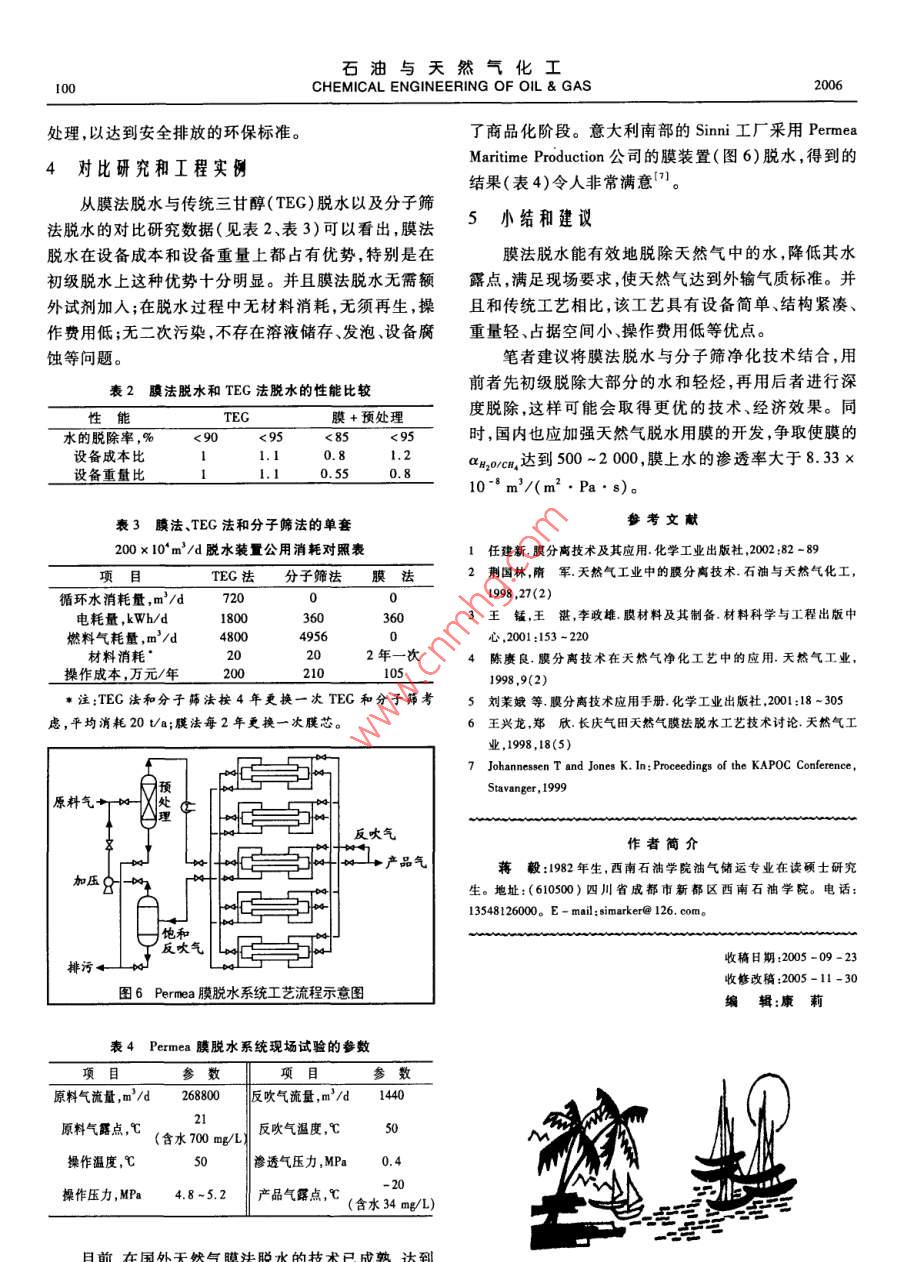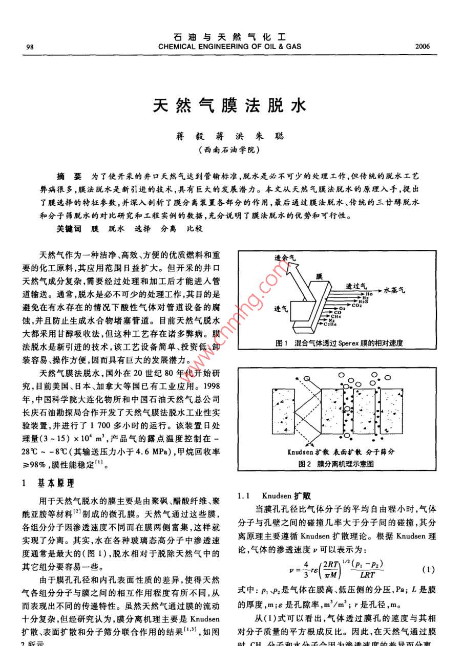 天然气膜法脱水