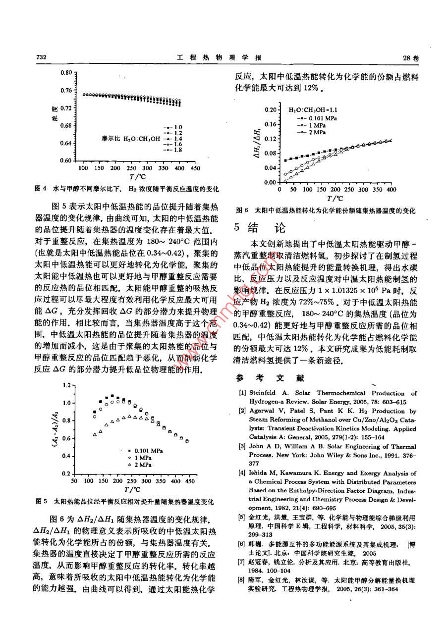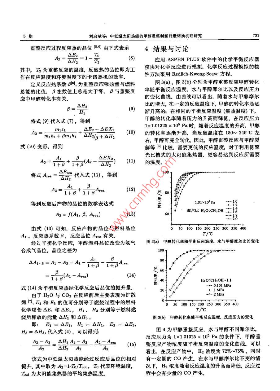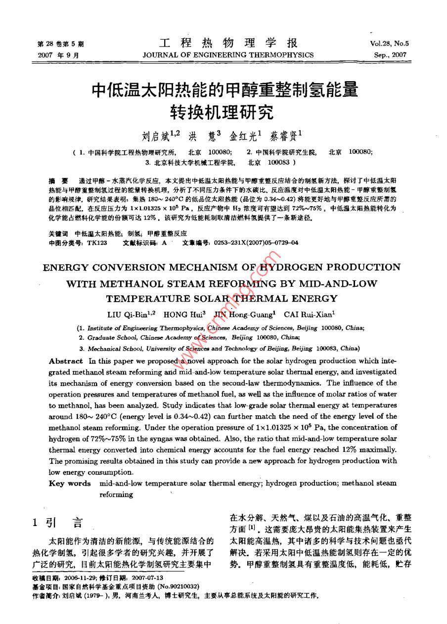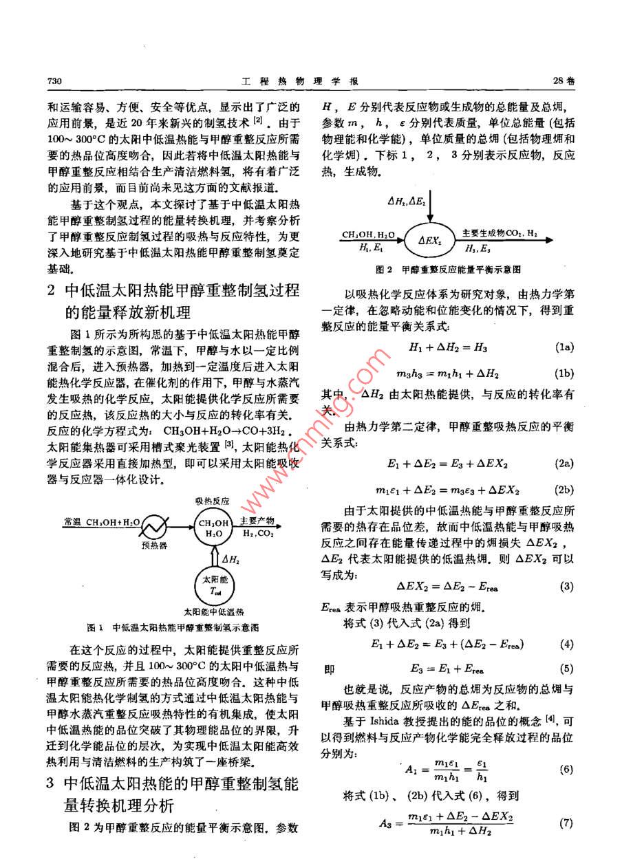 中低温太阳热能的甲醇重整制氢能量转换机理研究