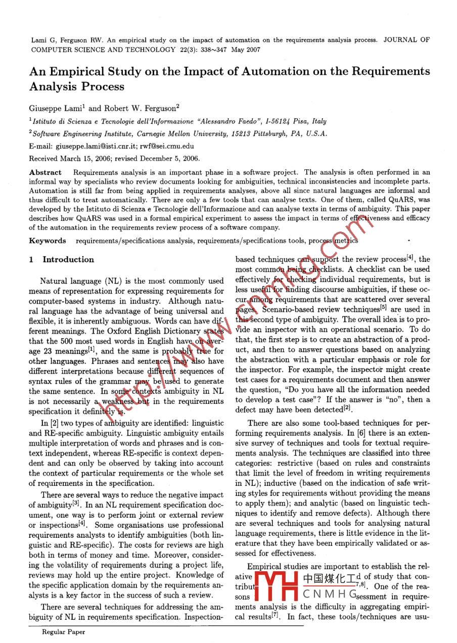 - 论文作者:Giuseppe Lami,Robert W. Fergus