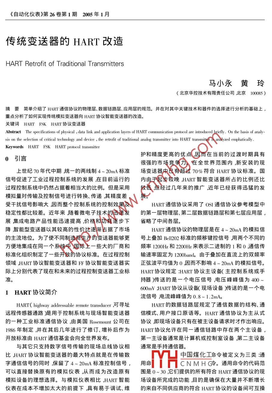 - 期刊名字:自动化仪表