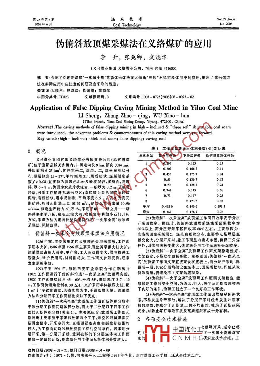 伪俯斜放顶煤采煤法在义络煤矿的应用