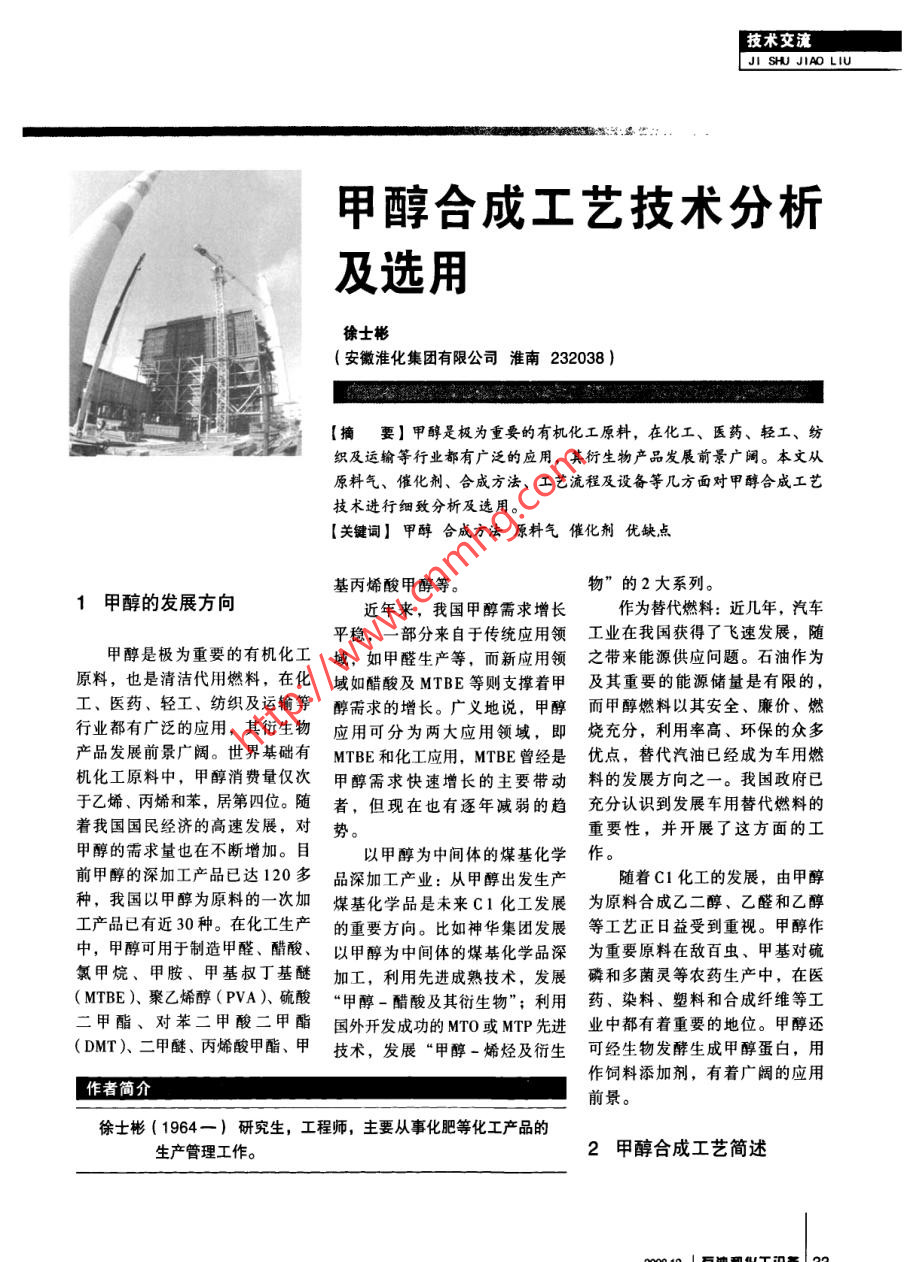 Lurgi和ICI低压甲醇合成工艺比较 2020-03-17