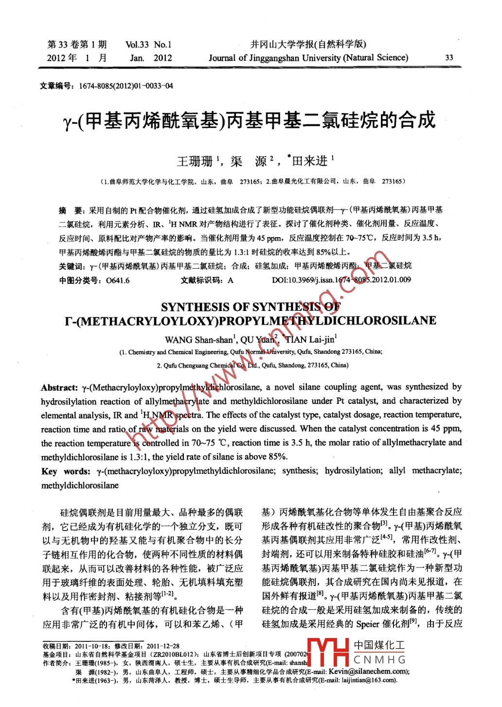 - 作者单位:曲阜师范大学化学与化工学院,曲阜晨光化工有限公司