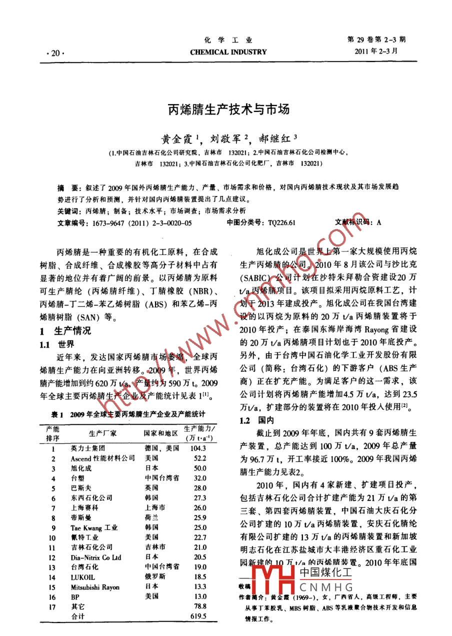 丙烯腈生产技术与市场