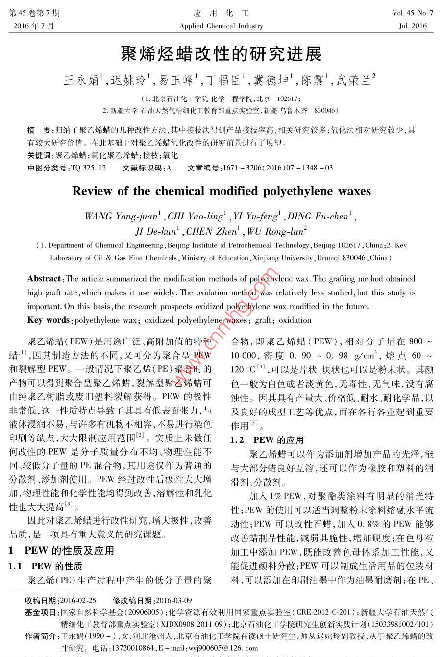 - 期刊名字:应用化工