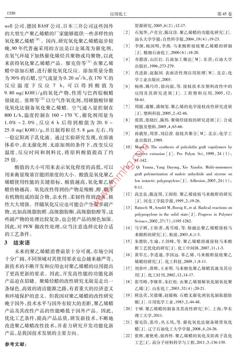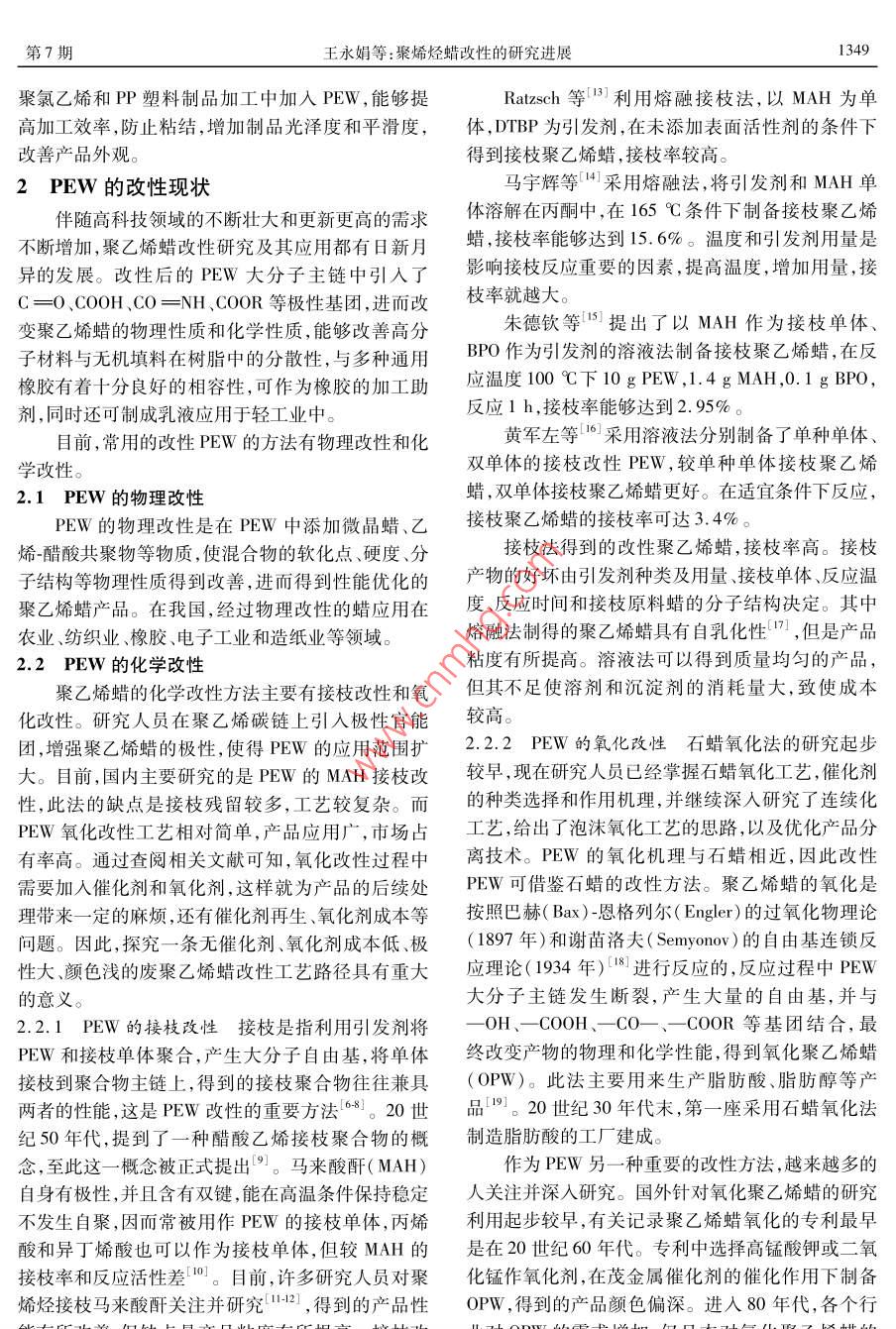 聚烯烃蜡改性的研究进展