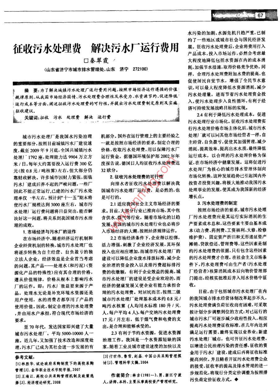 征收污水处理费解决污水厂运行费用