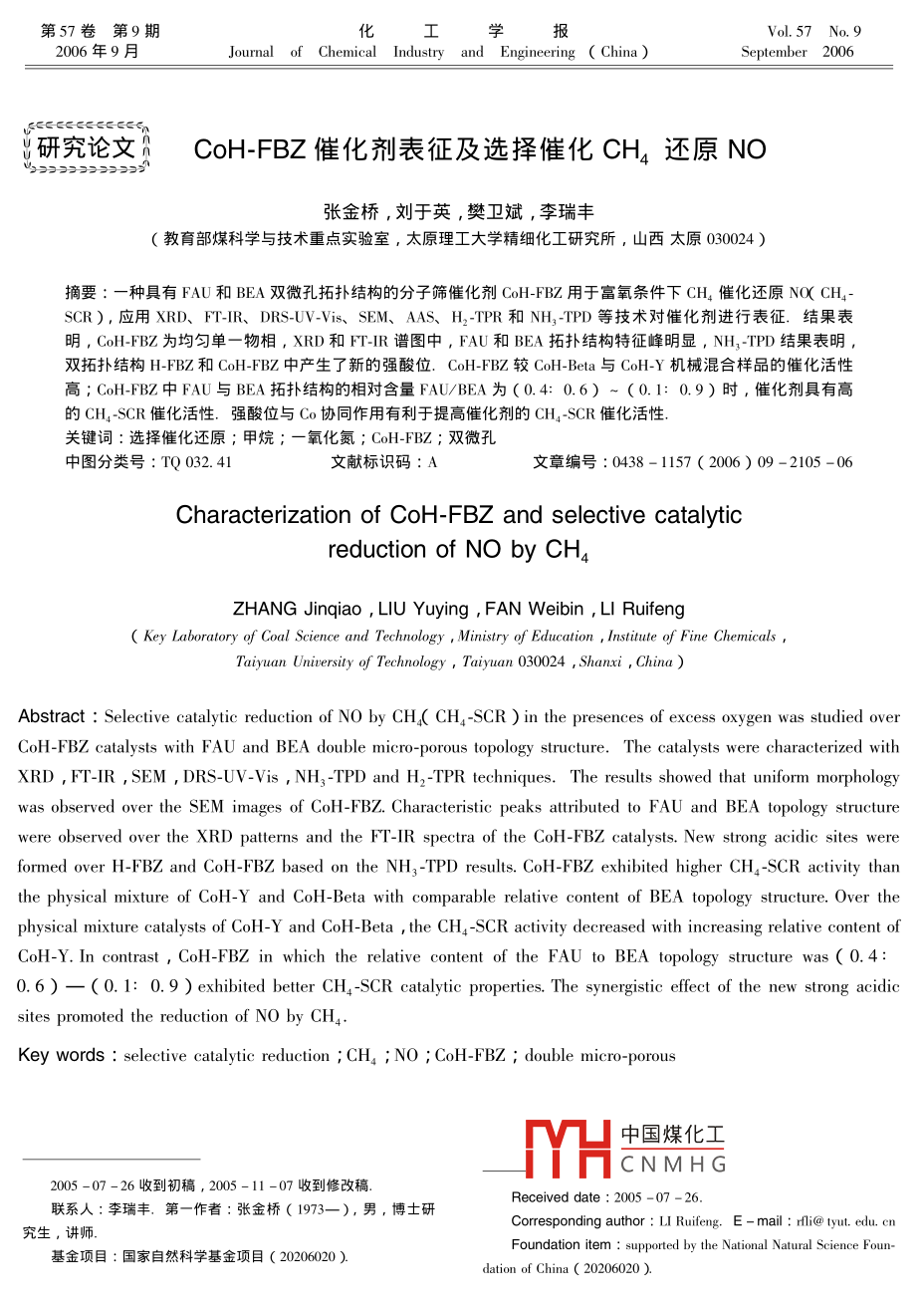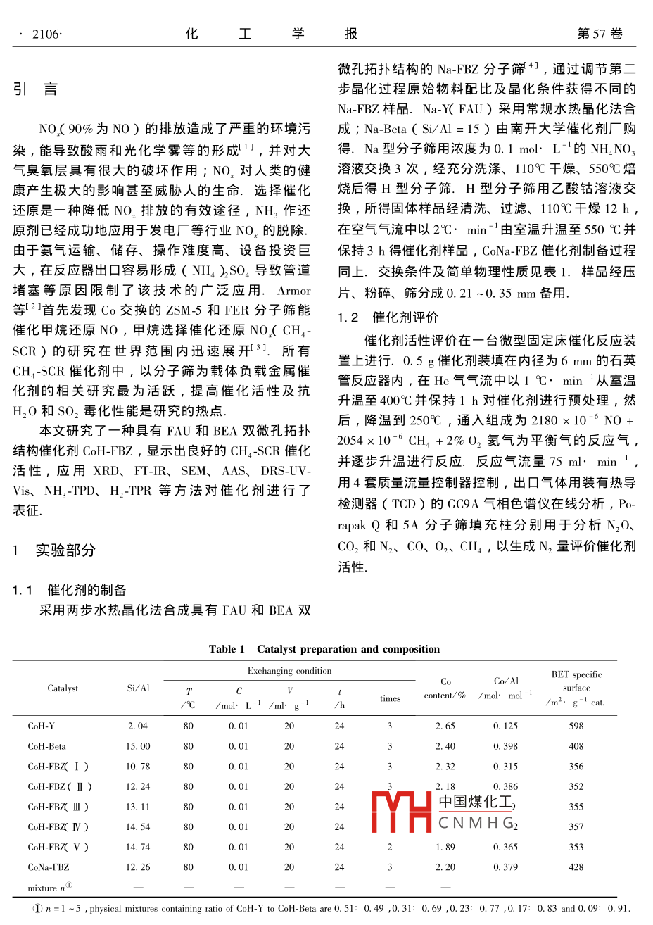 CoH-FBZ催化剂表征及选择催化CH4还原NO