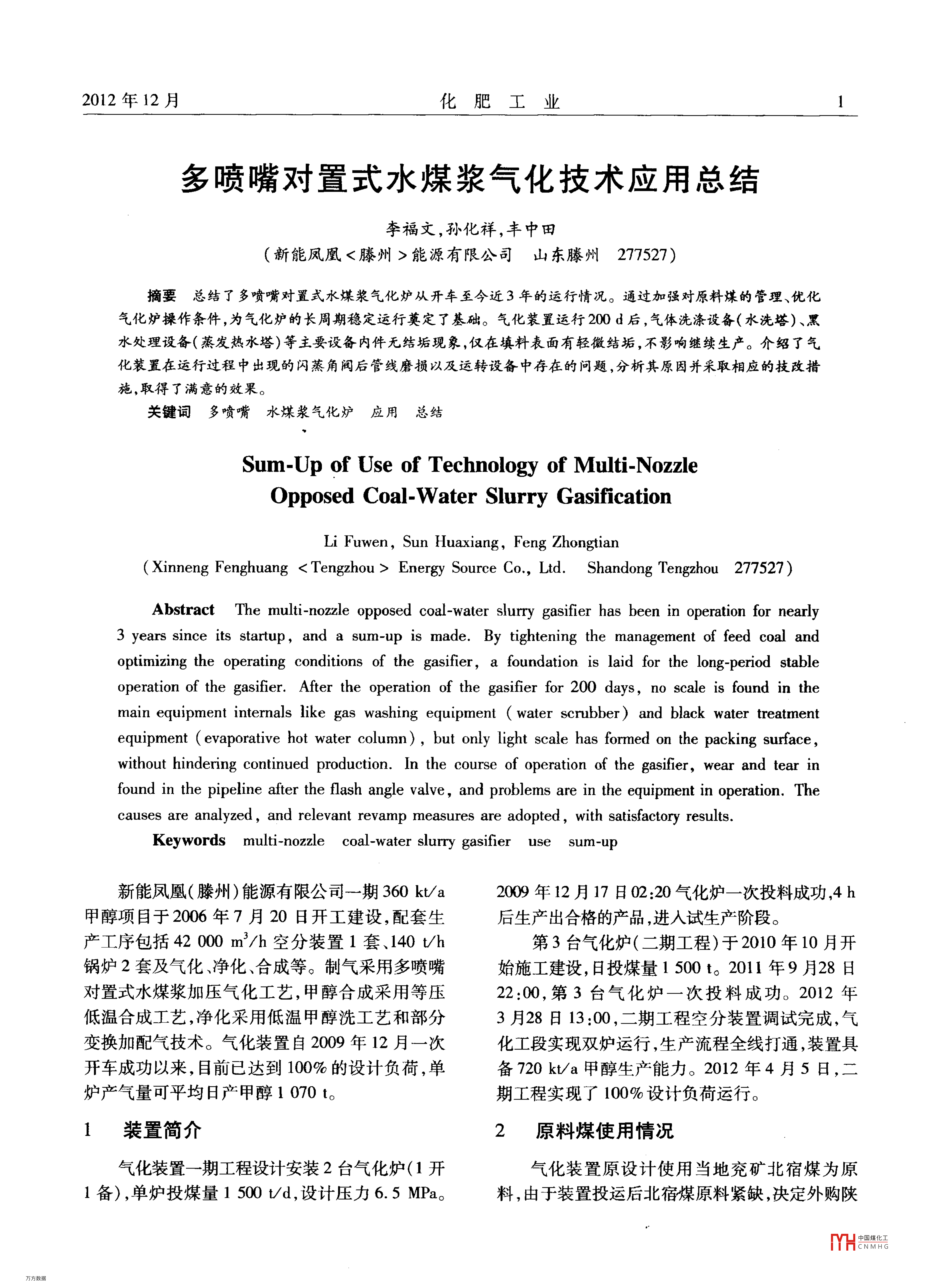 - 作者单位:新能凤凰<滕州>能源有限公司