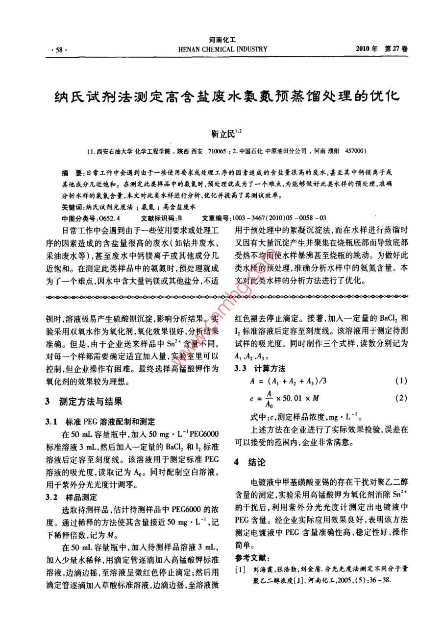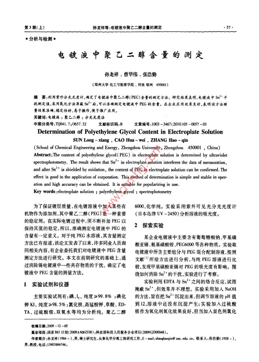 电镀液中聚乙二醇含量的测定