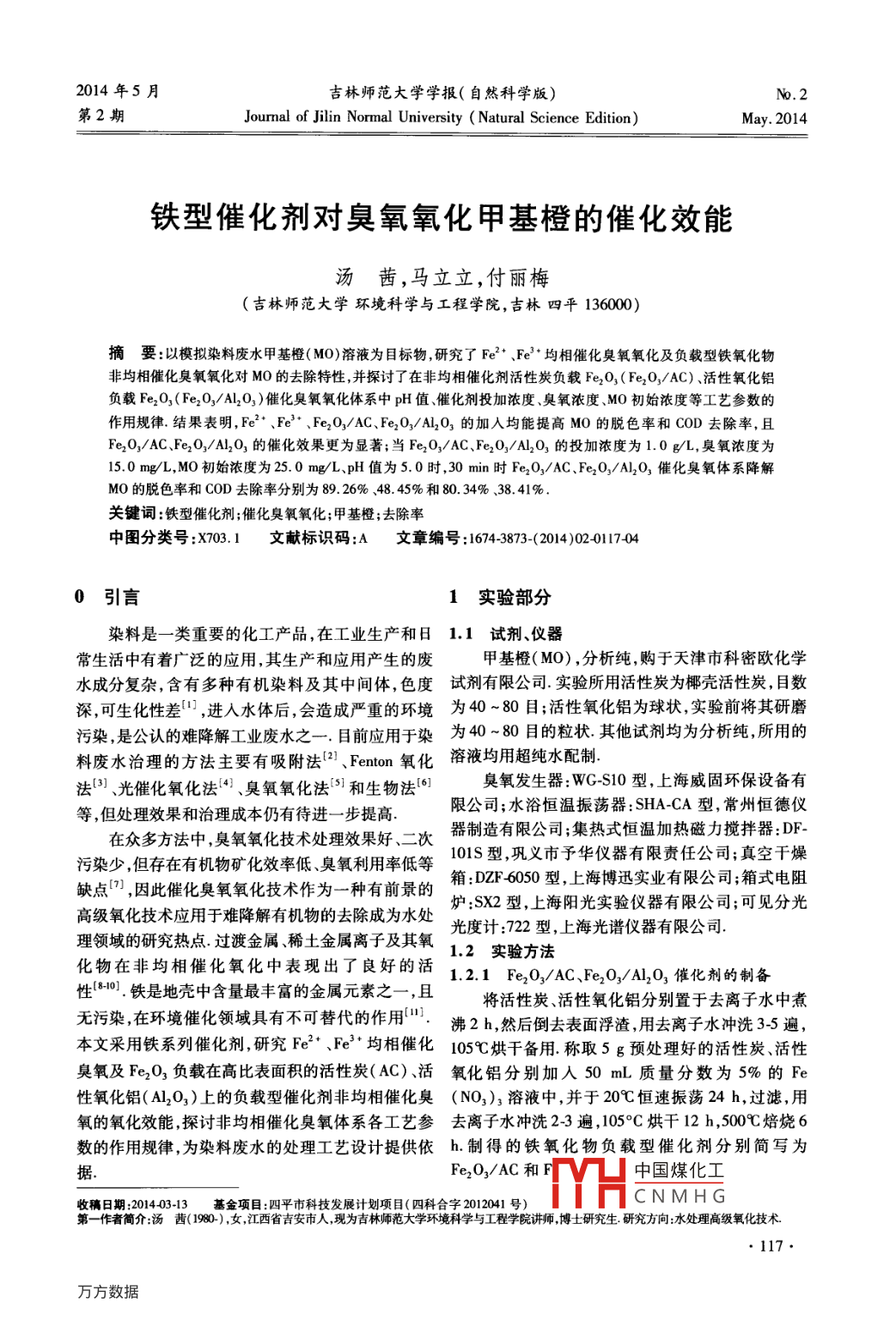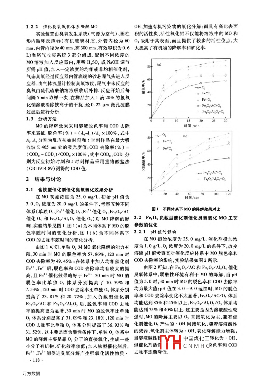 铁型催化剂对臭氧氧化甲基橙的催化效能