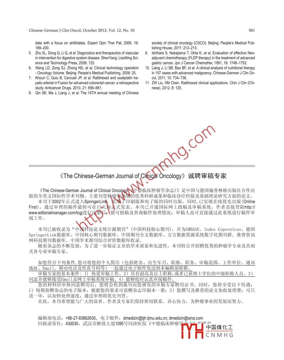 - 期刊名字:中德临床肿瘤学杂志(英文版)