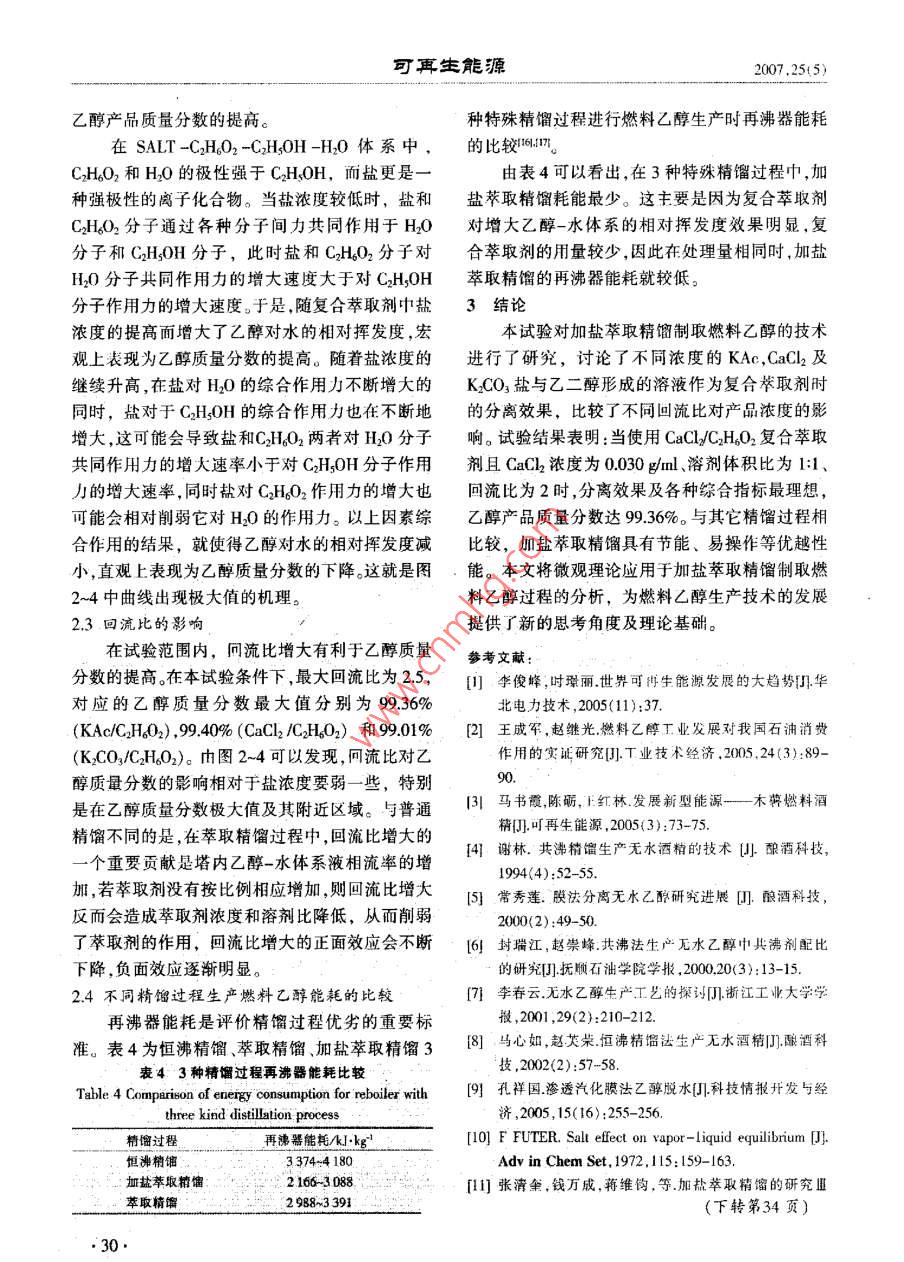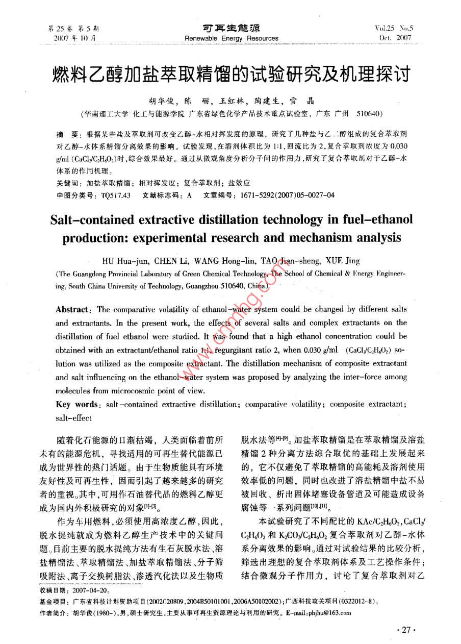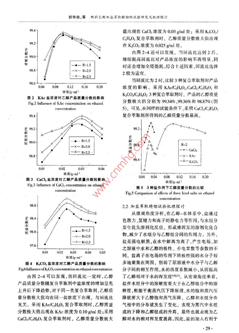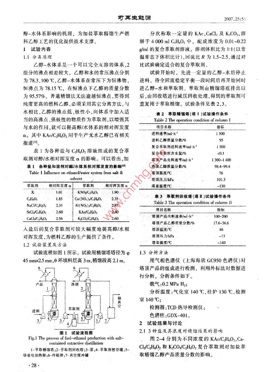 燃料乙醇加盐萃取精馏的试验研究及机理探讨