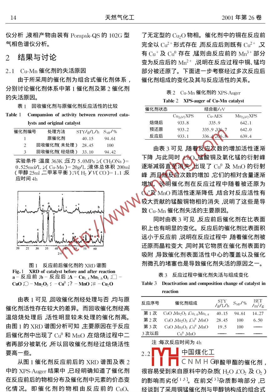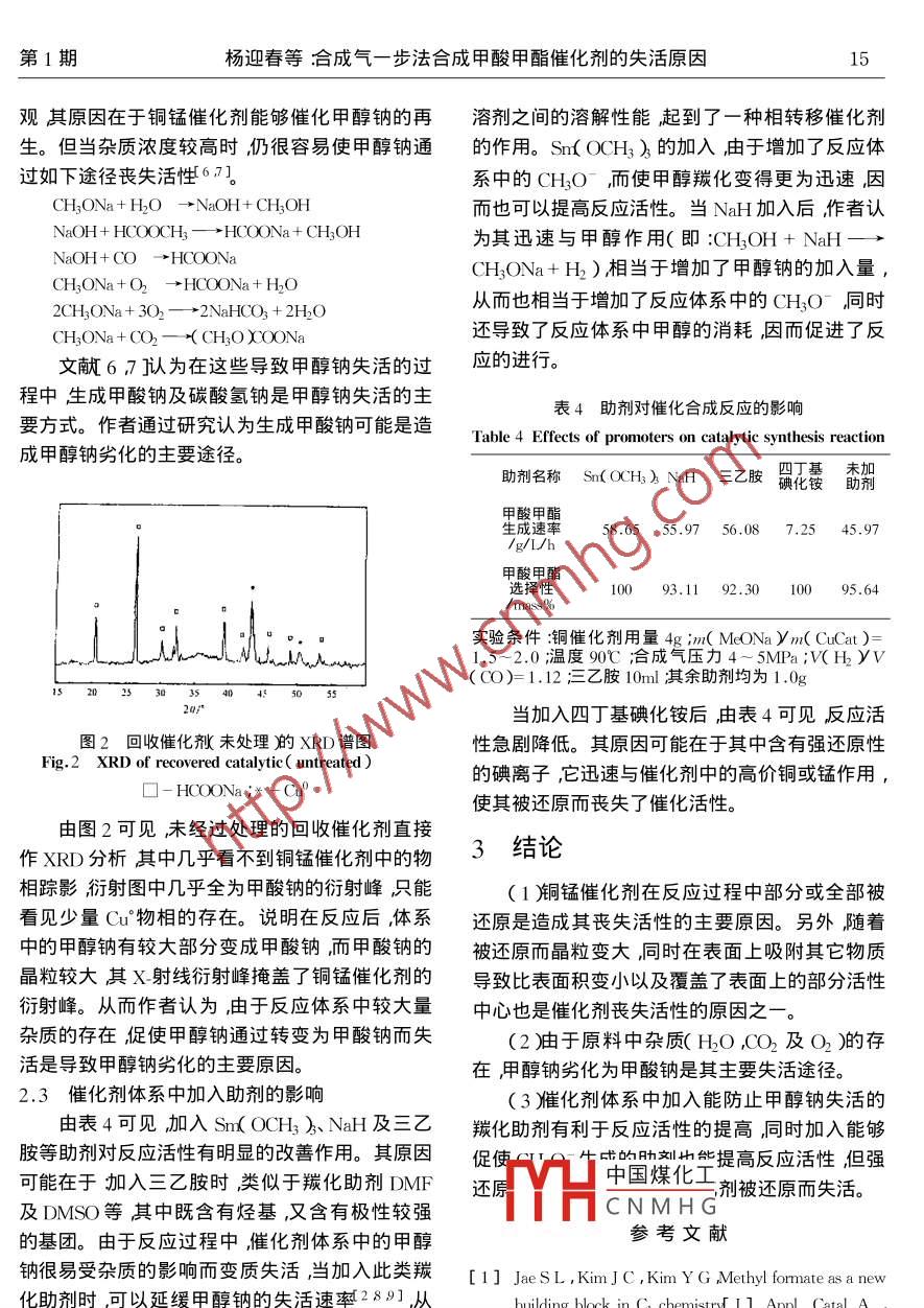 合成气一步法合成甲酸甲酯催化剂的失活原因