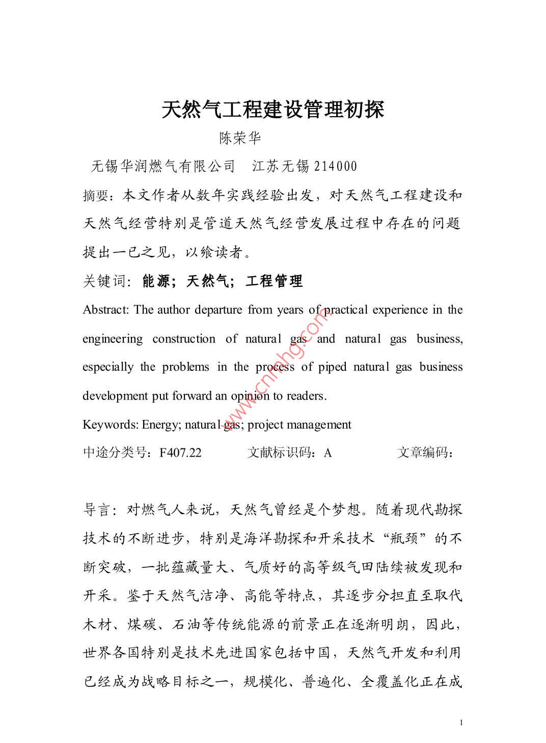 天然气工程建设管理初探