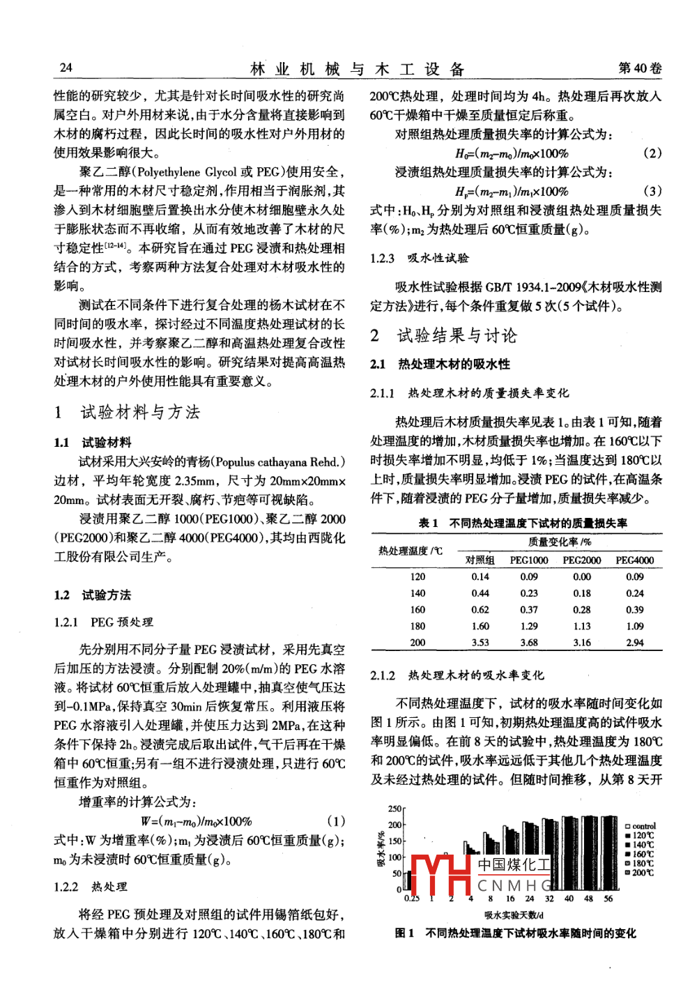 聚乙二醇和高温热处理复合改性对杨木吸水性的影响